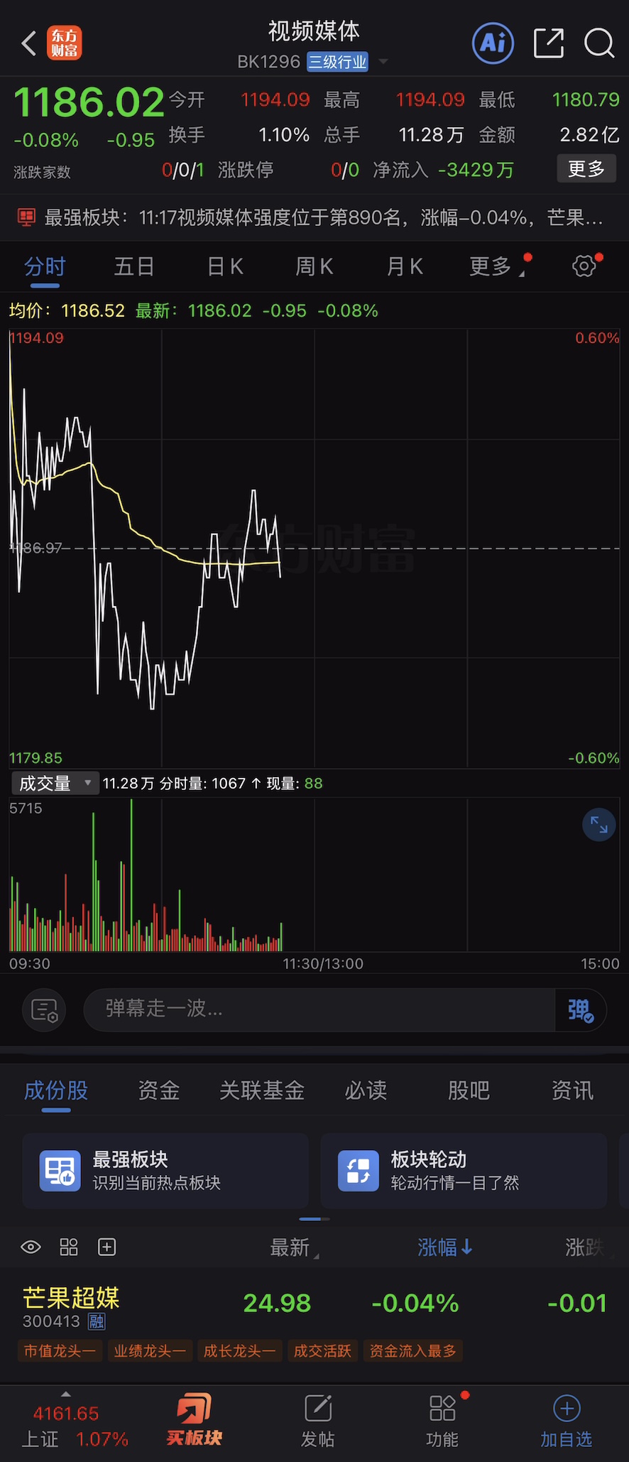 发现一个新的板块 视频媒体,里面只有芒果一只股,直接就是板块龙头