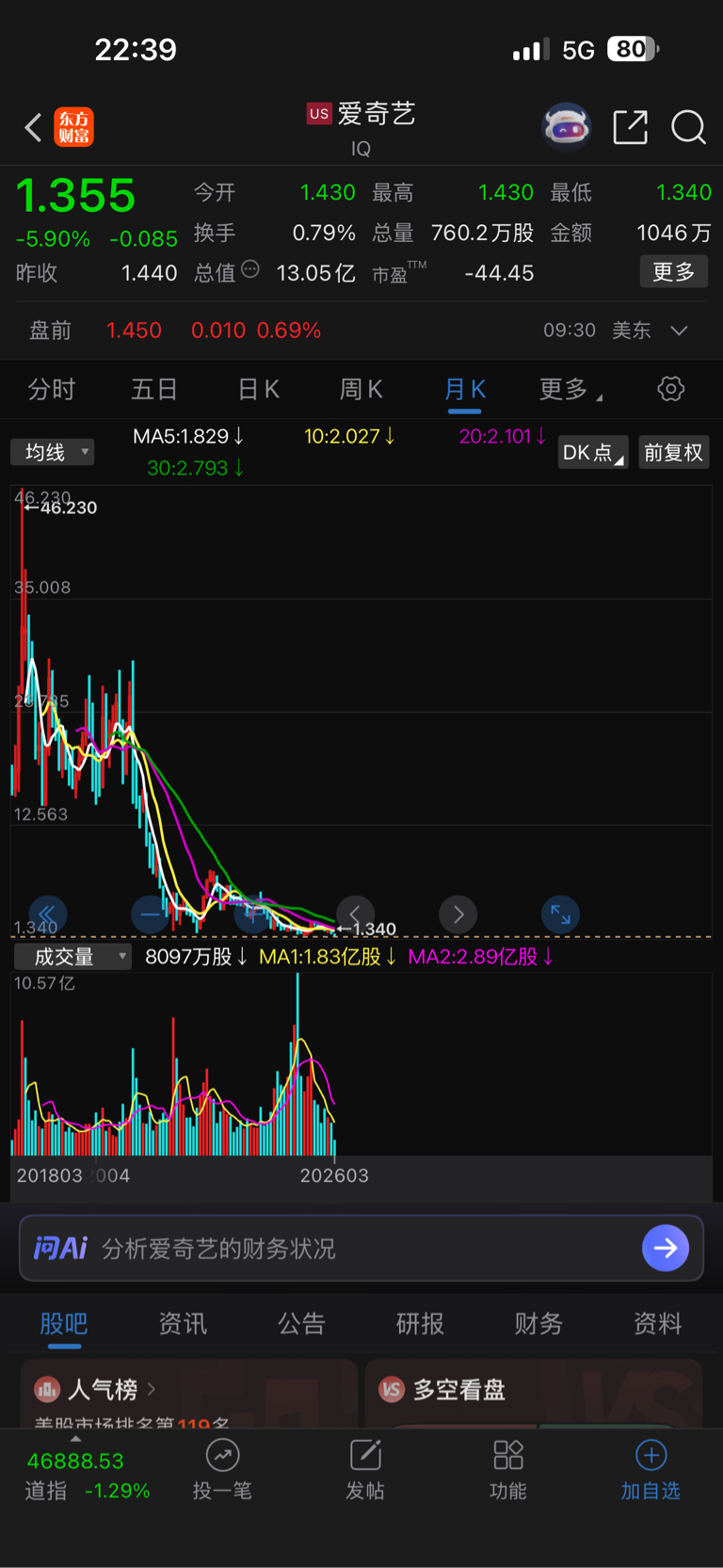 看看它大哥跌了40多倍,46块跌到1块多,看来长视频已经不行啦,明天割肉离场