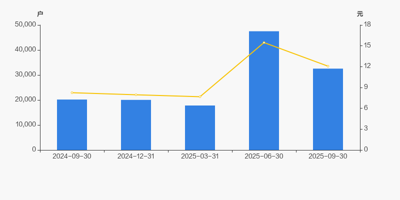 2024年9月30日至今,公司股东户数显著大幅增长,区间涨幅达61.27%。2024年9月30日至2025年9月30日区间股价上涨46.24%。