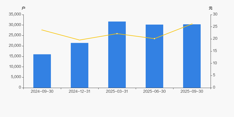 2024年9月30日至今,公司股东户数显著大幅增长,区间涨幅达89.57%。2024年9月30日至2025年9月30日区间股价上涨10.38%。