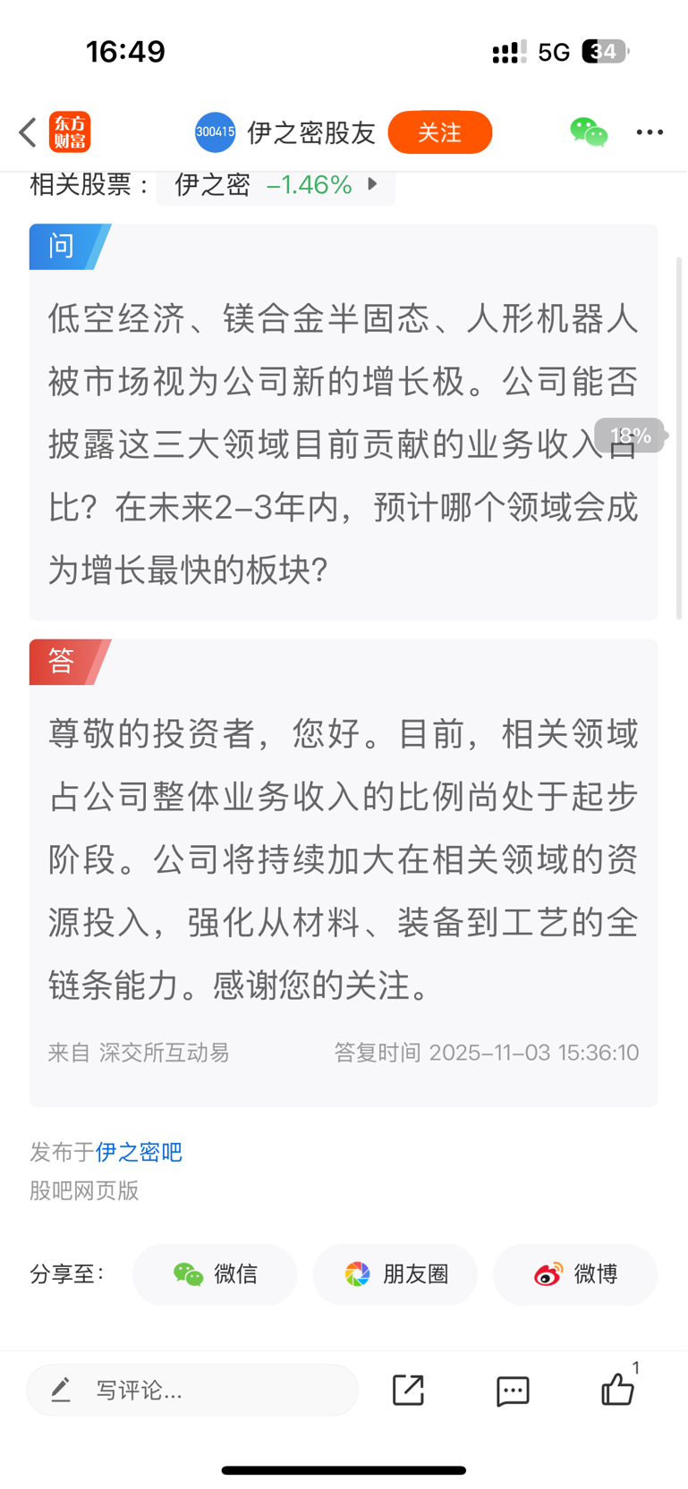 $伊之密(SZ300415)$ 回答了一大堆, 就这个有点用