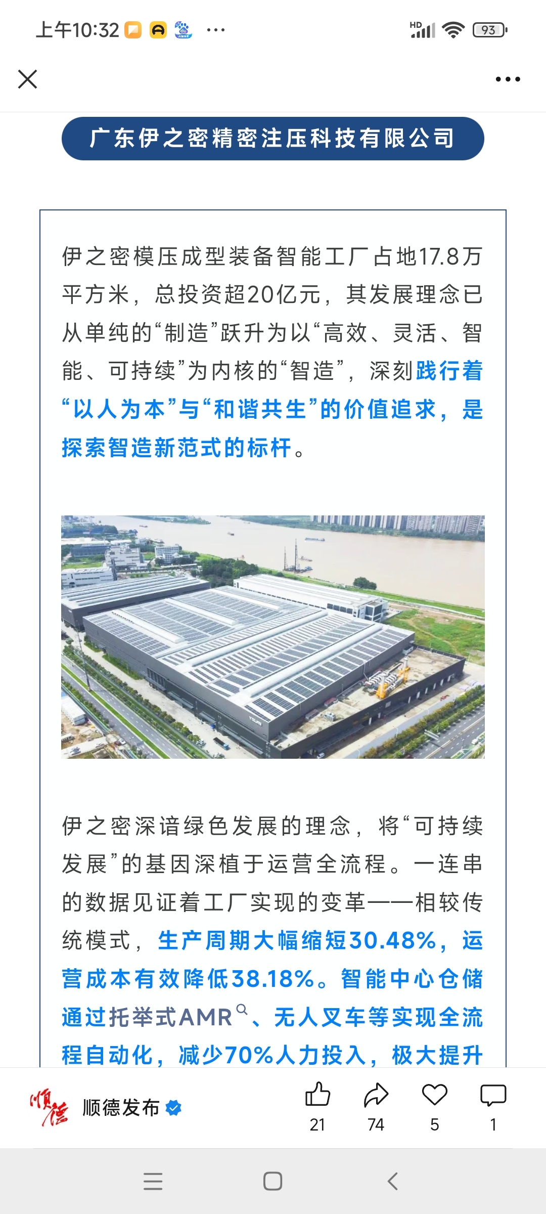 伊之密今年订单充足快过产生产工人天天加班加步赶出货!我家在顺德五沙工业园旁就有三间大型伊之密智能工厂楼顶全部装满大阳能发电板!太阳能发电板每年为企业节省几千万电费!在伊之密工厂旁边马可波罗生产陶瓷小厂都市值300多亿!比它好10倍伊之密市值才121亿严重低估我相信伊之密市值会超过300亿我相信是金子总会发光的!