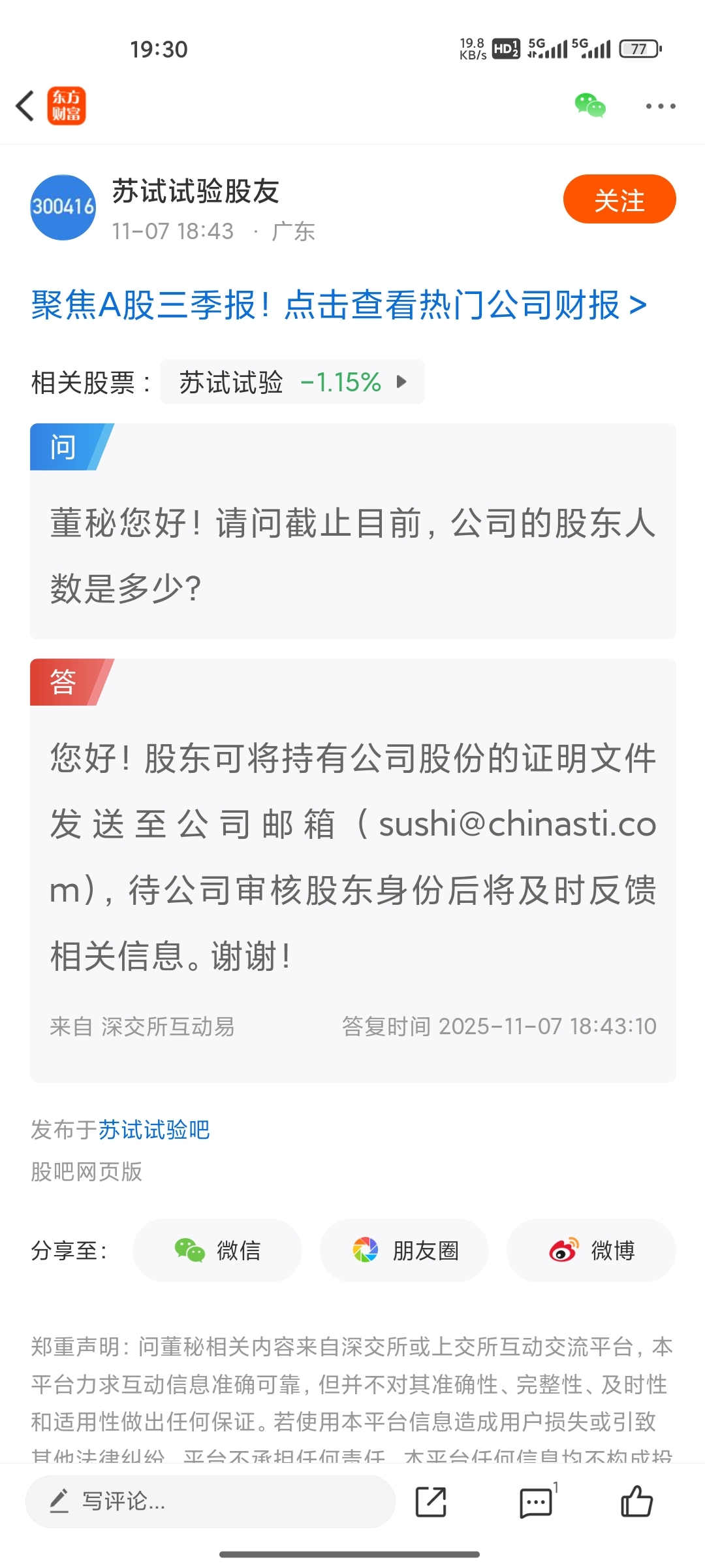 $苏试试验(SZ300416)$ 不配知道股东人数