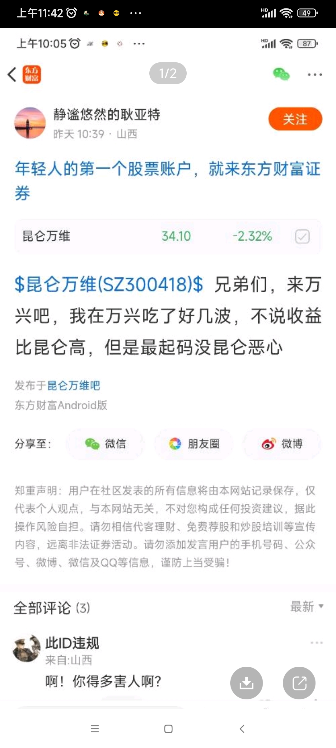 温馨提示: 1.根据《证券法》规定,禁止编造、传播虚假信息或者误导性信息,扰乱证券市场;2.用户在本社区发表的所有资料、言论等仅代表个人观点,与本网站立场无关,不对您构成任何投资建议。用户应基于自己的独立判断,自行决定证券投资并承担相应风险。《东方财富社区管理规定》