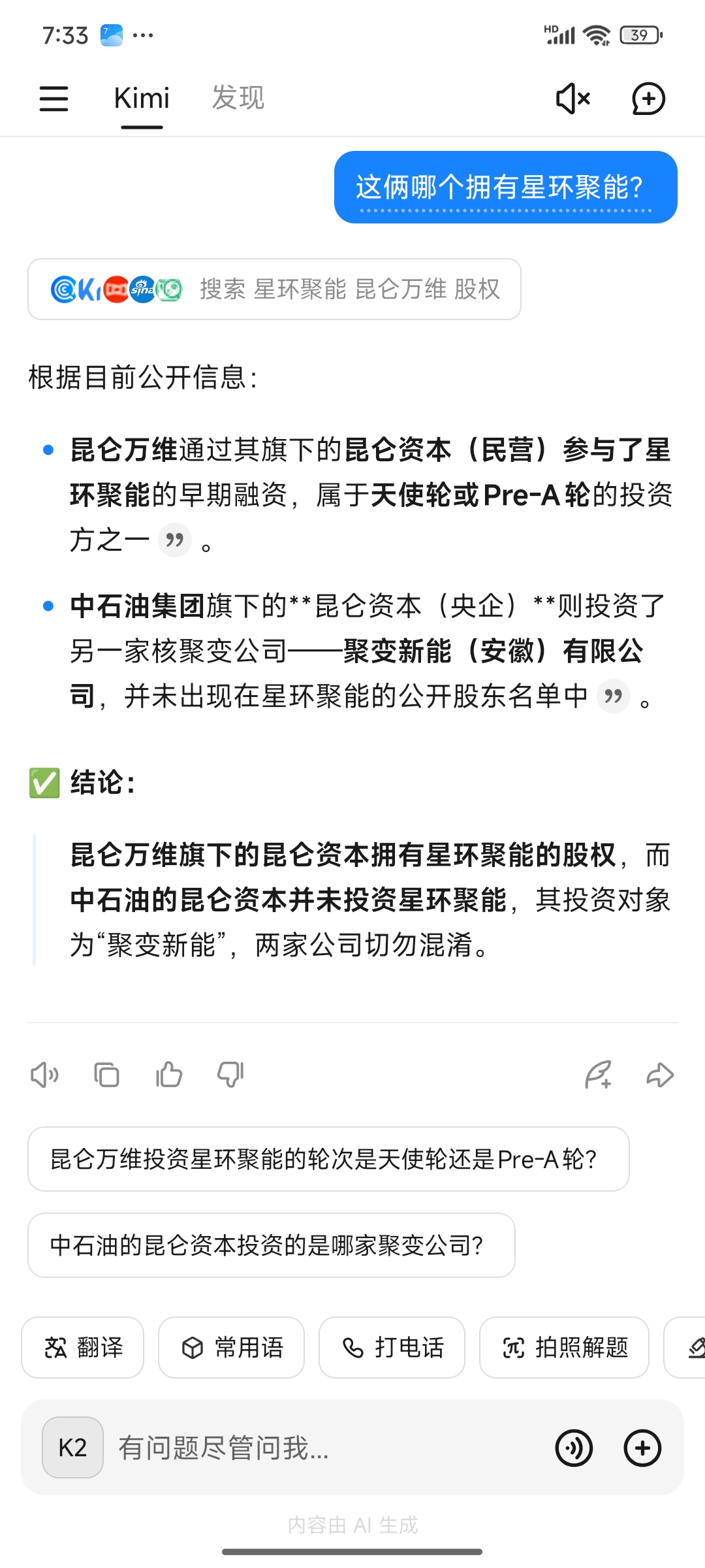 星环聚能是昆仑万维旗下而非中石油的昆仑资本持有的!