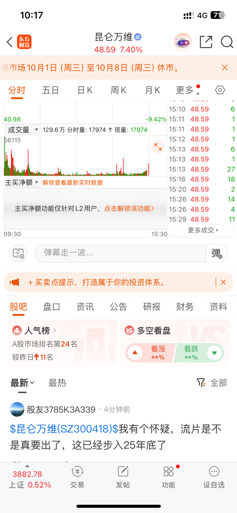 温馨提示: 1.根据《证券法》规定,禁止编造、传播虚假信息或者误导性信息,扰乱证券市场;2.用户在本社区发表的所有资料、言论等仅代表个人观点,与本网站立场无关,不对您构成任何投资建议。用户应基于自己的独立判断,自行决定证券投资并承担相应风险。《东方财富社区管理规定》