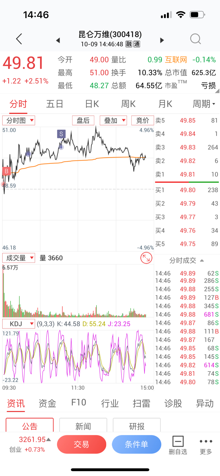 $昆仑万维(SZ300418)$ 很强了,今天创业板盘中回调