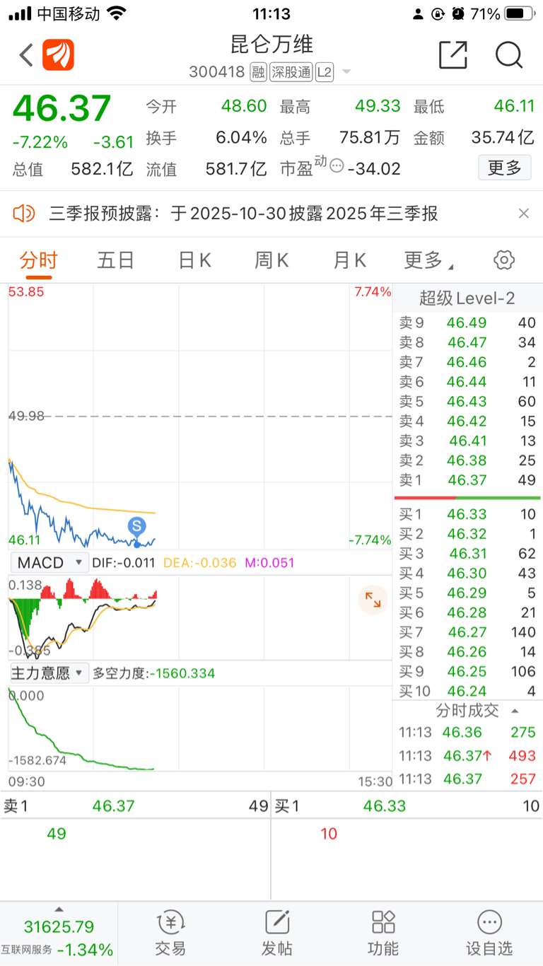 $昆仑万维(SZ300418)$ 不玩了,一天亏完