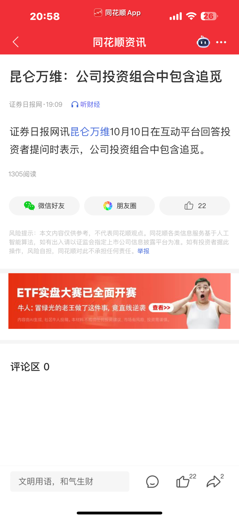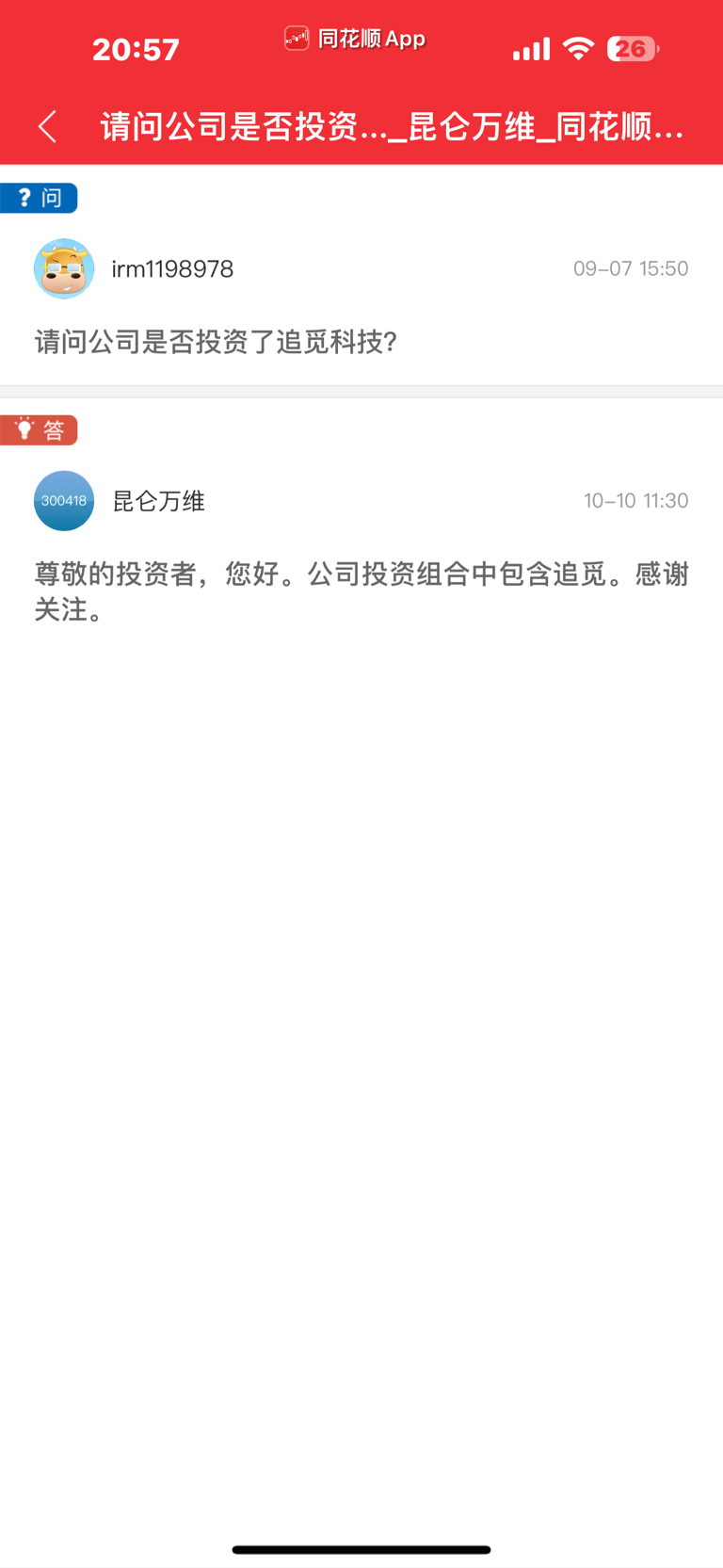 今天尾盘买的,昆仑万维杭州节获得几个大奖!投资了追觅!蹲几个月看看情况