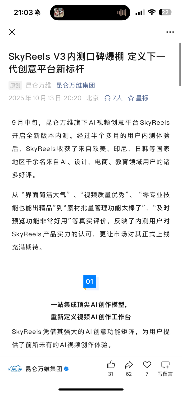 $昆仑万维(SZ300418)$ 国内唯一可以对标sora的!!!!!我坚定看好