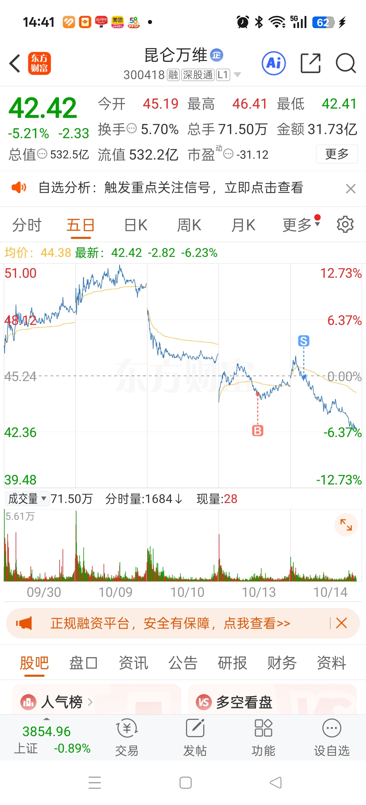 $昆仑万维(SZ300418)$ 赚了个寂寞,早上没卖好,