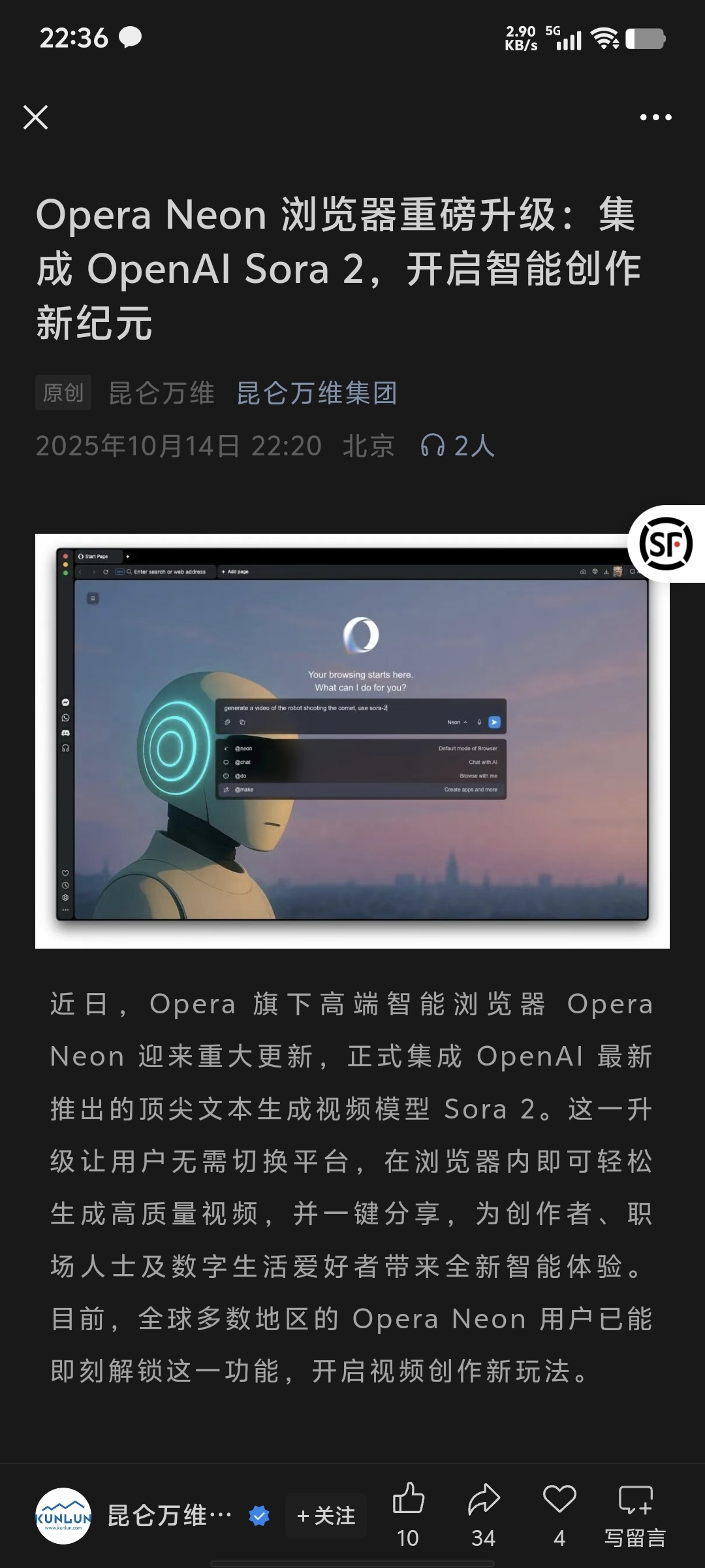 $昆仑万维(SZ300418)$ 这是A股首家支持sora2的公司吧,主力明天红一点吧