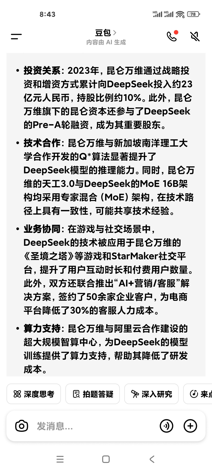 $昆仑万维(SZ300418)$ 与deepseek深度关联,潜力无限!空间无限!