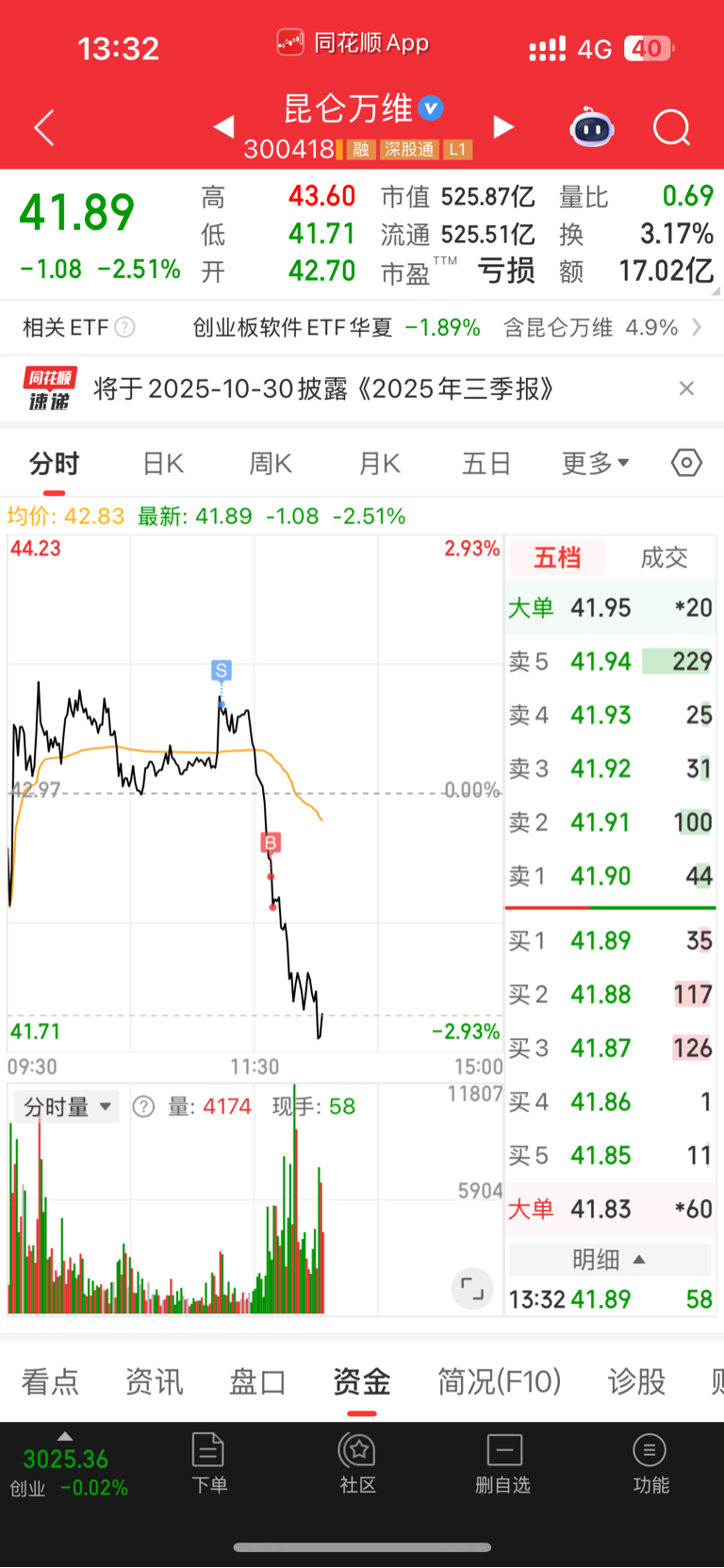 $昆仑万维(SZ300418)$ 后悔接回来了,这股已经确认走下跌趋势了