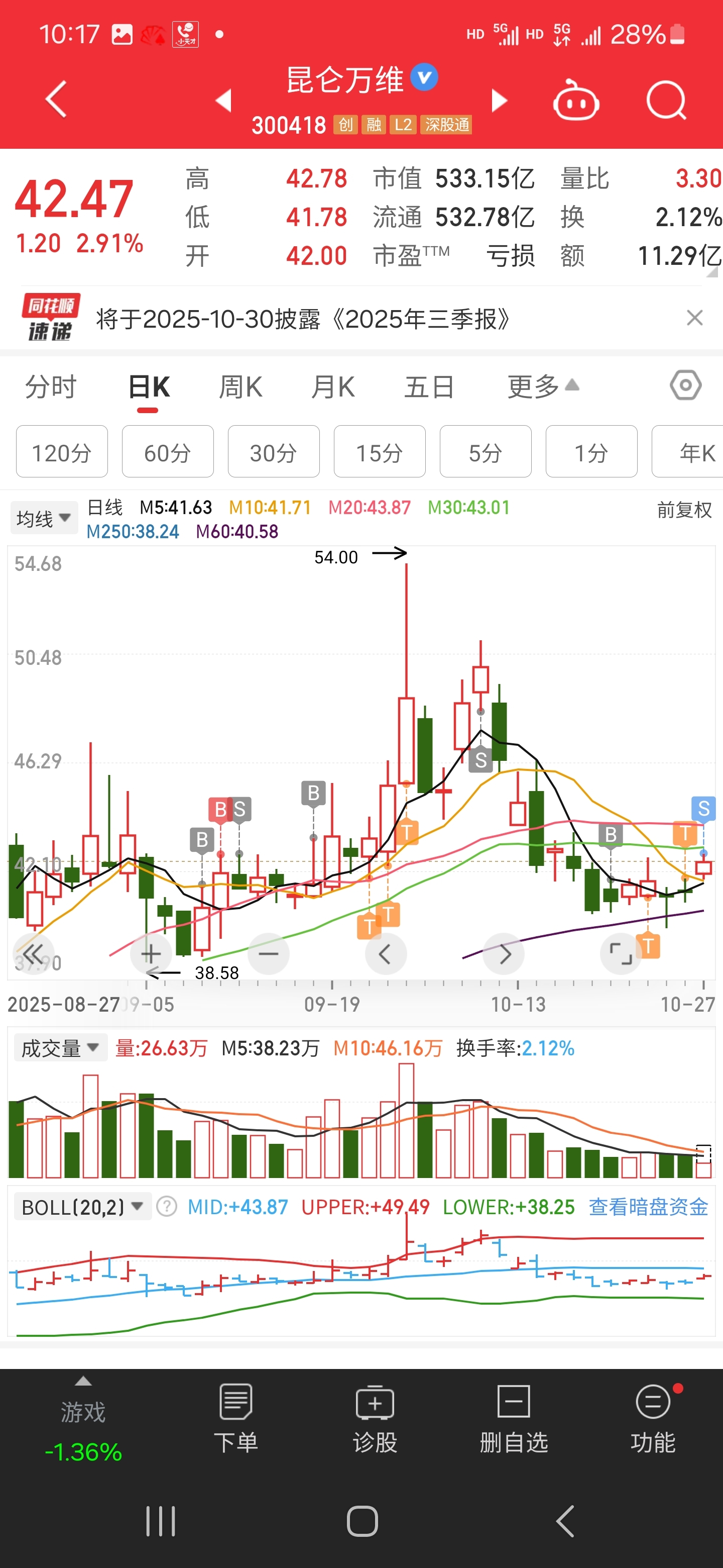 $昆仑万维(SZ300418)$ 看到那几个股神还在唱多 果断 走了