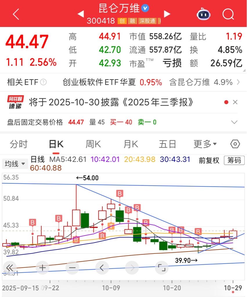 尽管面临诸多挑战,昆仑万维的投资价值仍然值得关注。从估值角度看,截至2025年10月29日,公司总市值558.26亿元,PS(市销率)为7.48倍,PB(市净率)为4.02倍,PE为-32.63倍(由于亏损)。与同行业公司相比,公司的PS倍数处于合理区间,考虑到公司的高成长性,存在一定的估值修复空间。