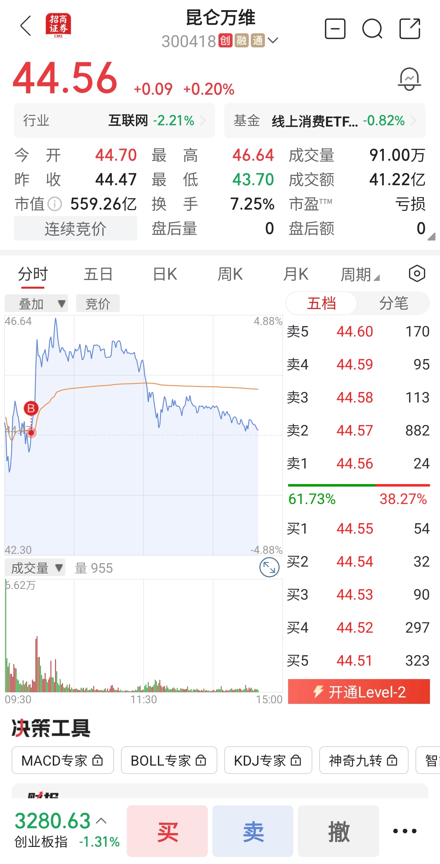 $昆仑万维(SZ300418)$ 盘中美滋滋