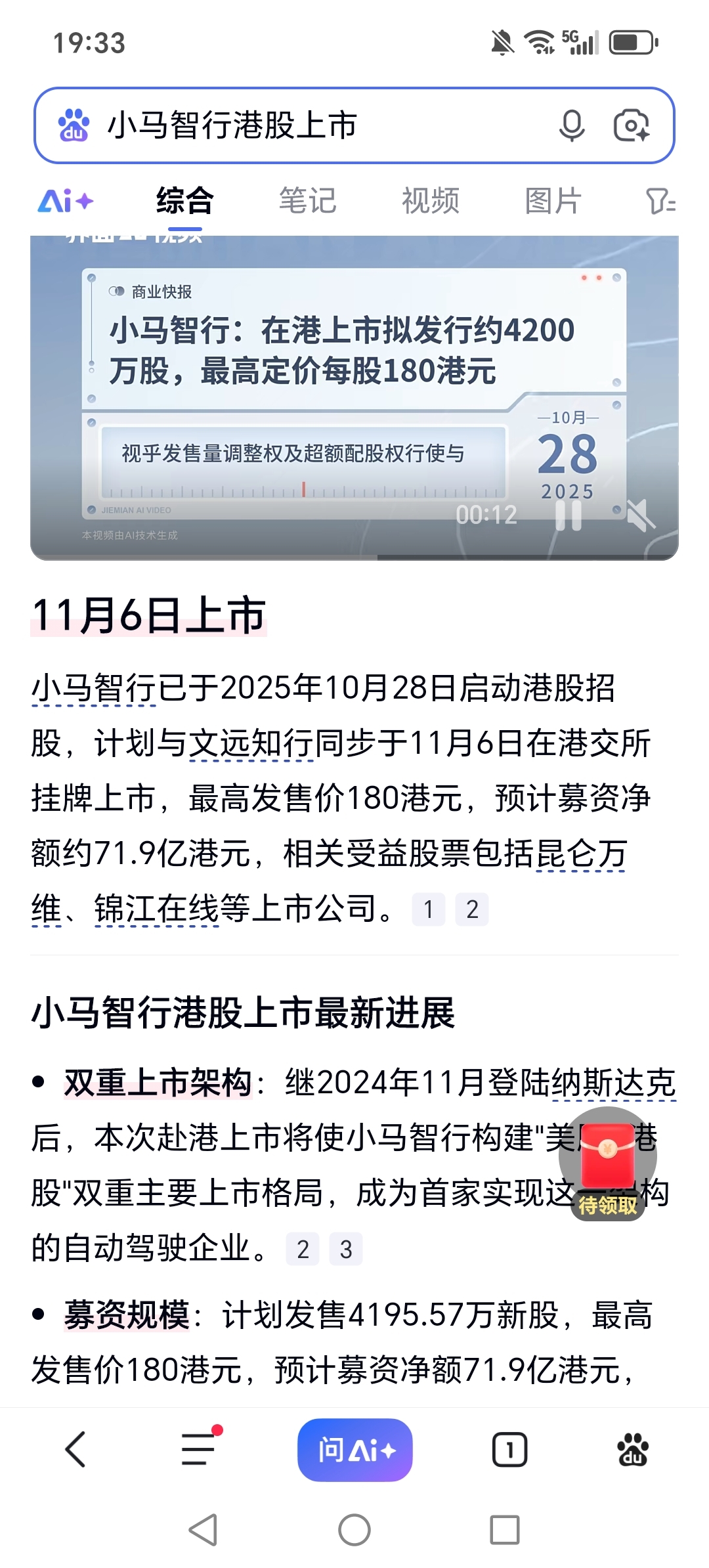 小马智行11月6日香港上市,昆仑万维直接持有二点多股份