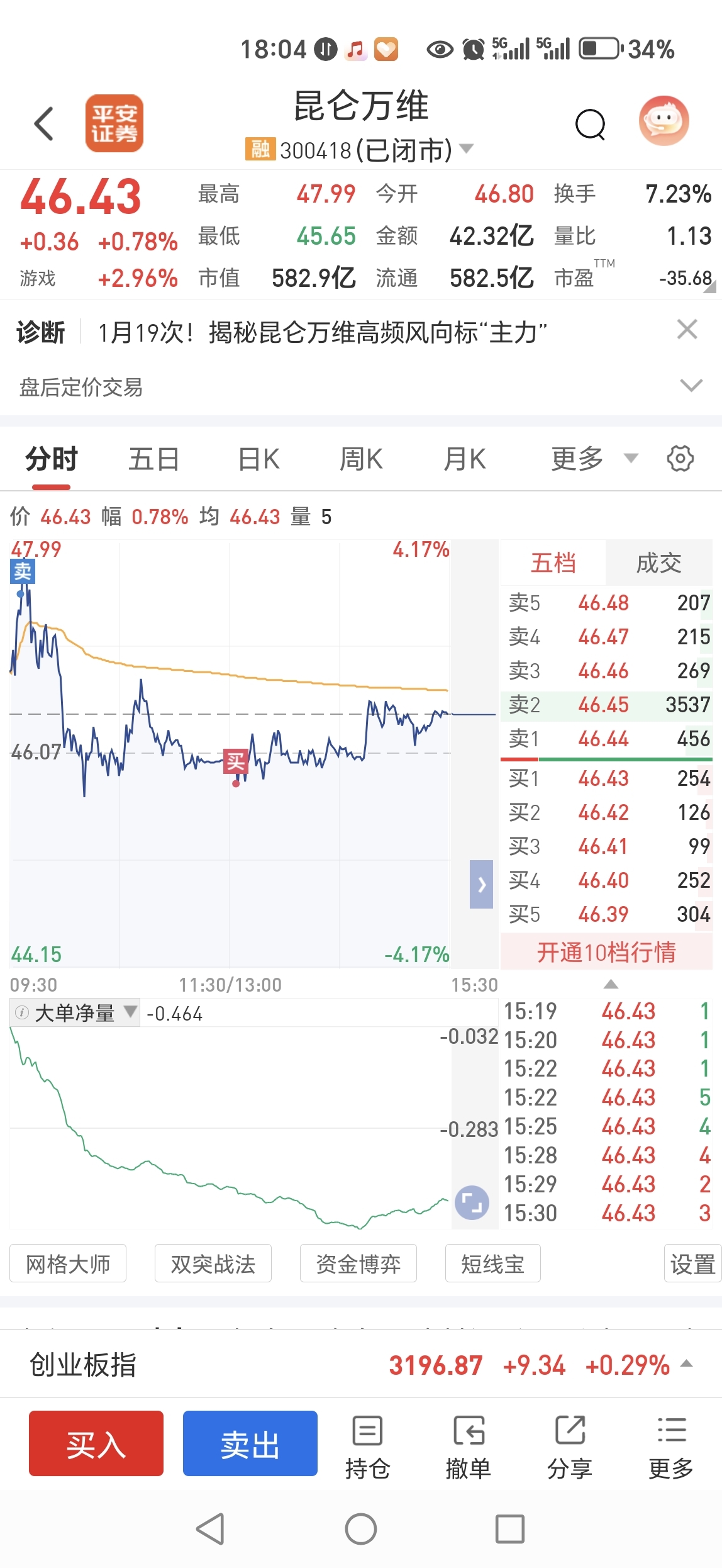 $昆仑万维(SZ300418)$ 主力,我不相信你会这么好心让我解套,今天被我猜中了吧!你涨0.78%,我涨3.39%卖,跌-0.22%买,能涨4.39%。