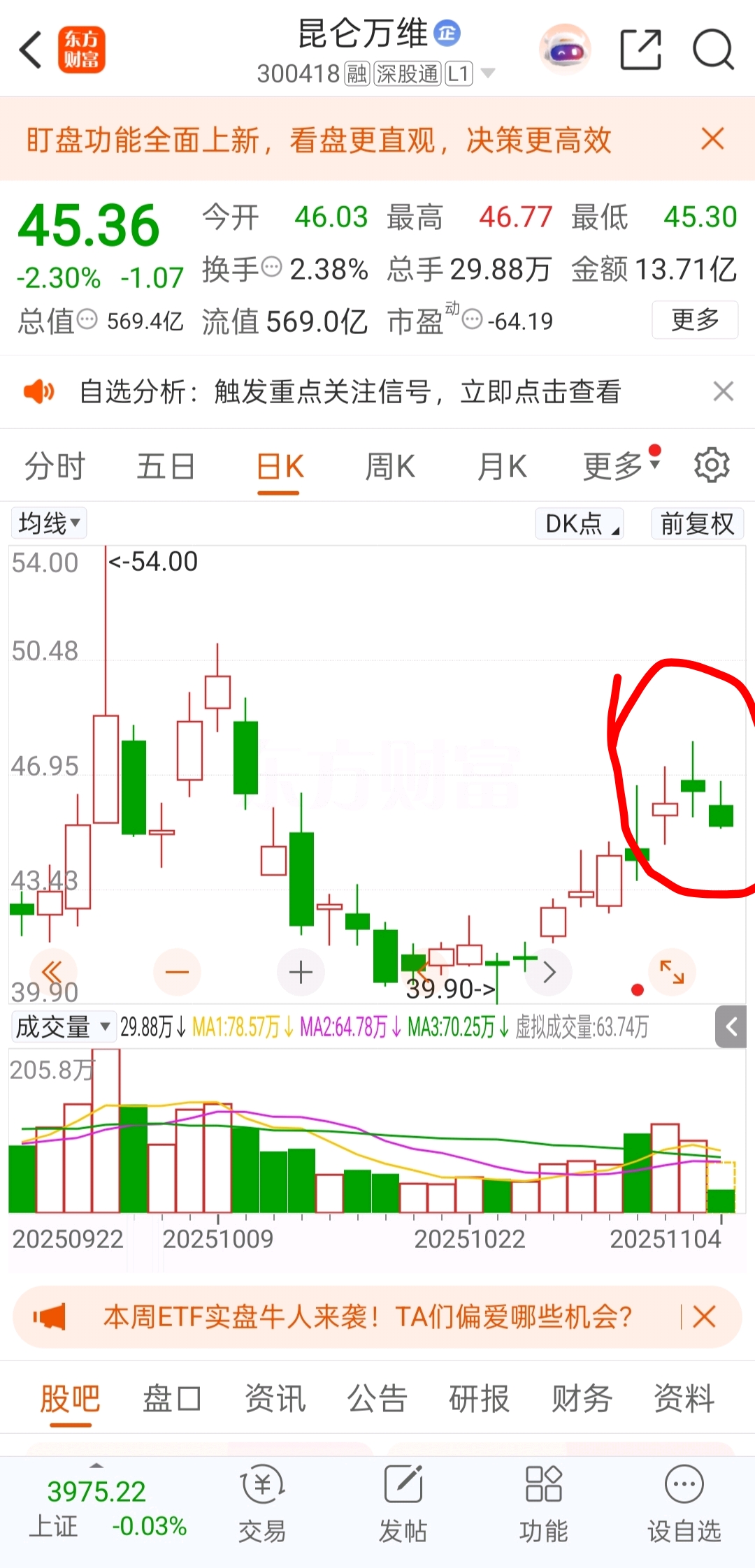 $昆仑万维(SZ300418)$ 出现顶分型了