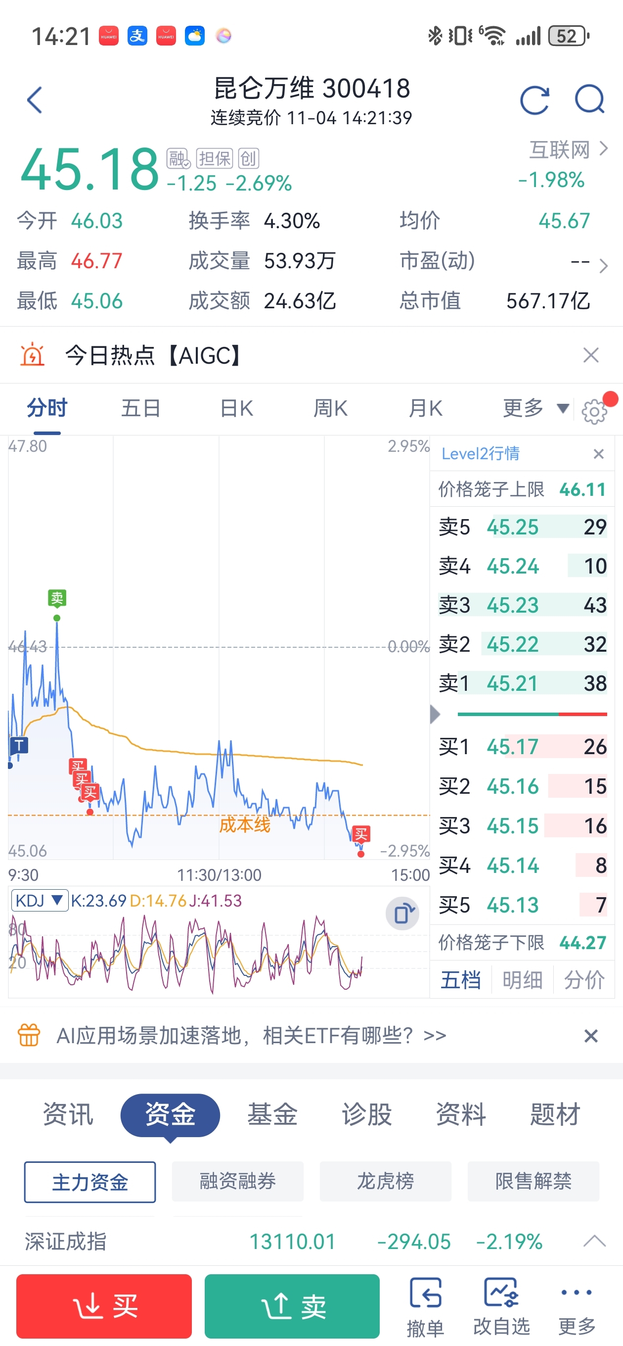$昆仑万维(SZ300418)$ 做T好累,今天亏成狗