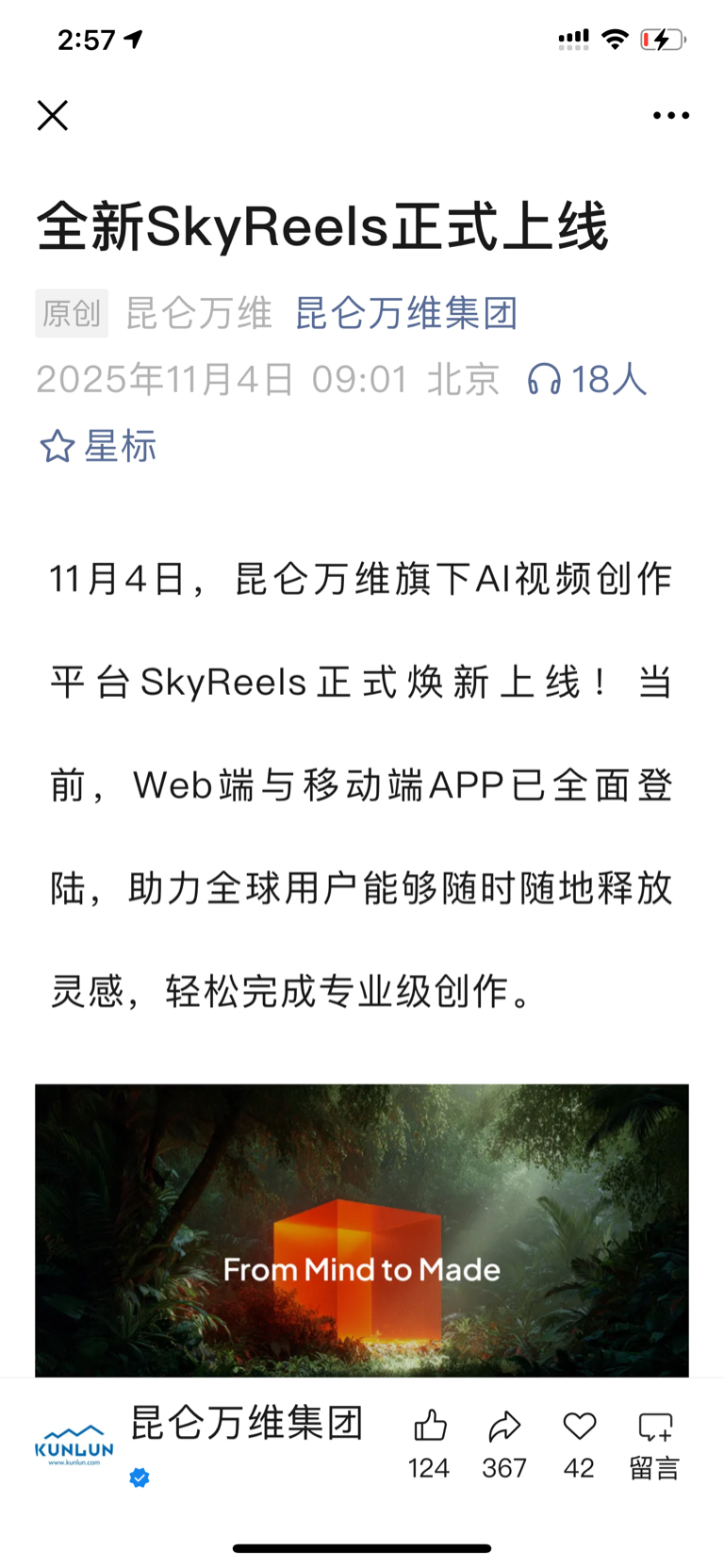 $昆仑万维(SZ300418)$ 我把利好提前发了吧,免得一会你们催