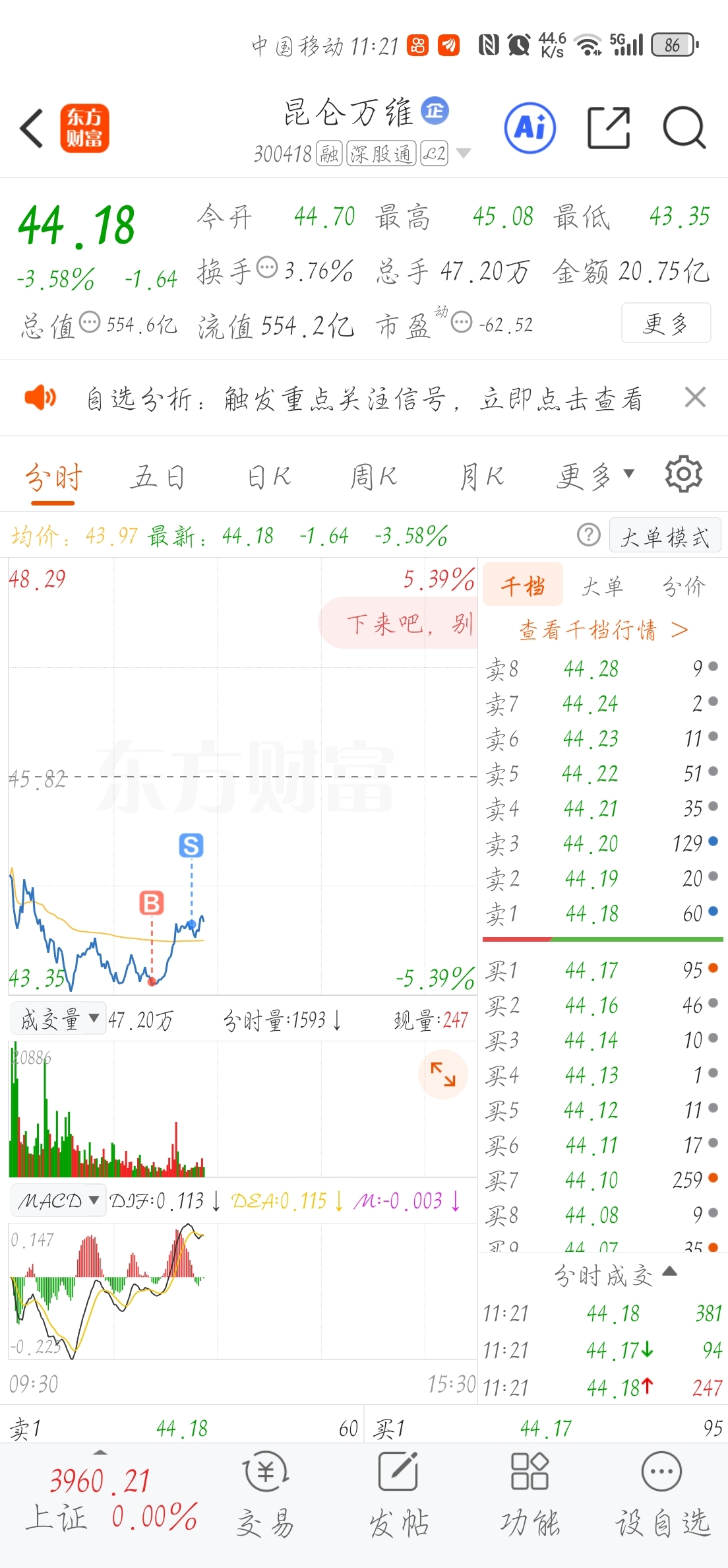 $昆仑万维(SZ300418)$ 虽然t的不完美,但两天降低一块五的成本知足了
