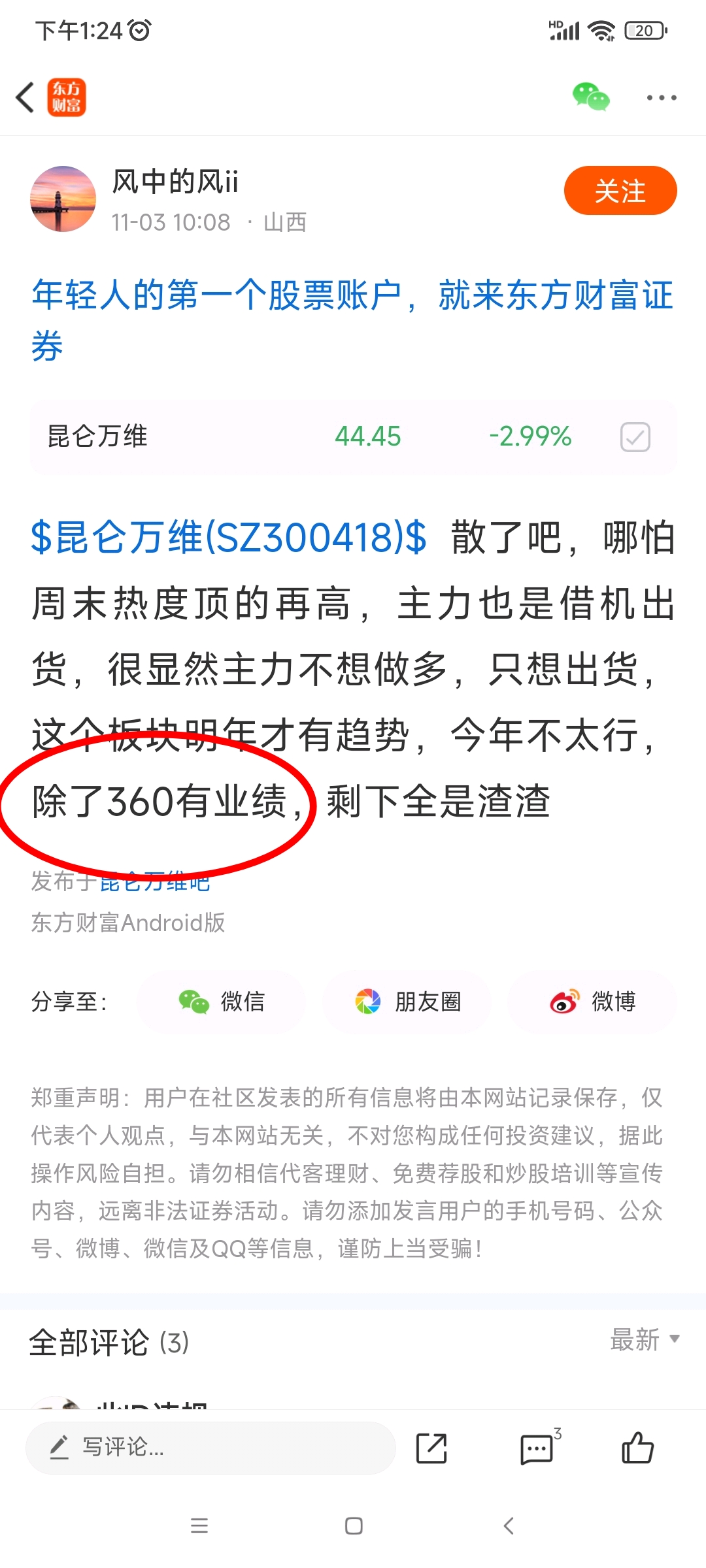 !自己预测这预测那,买错的是一点不提。天天唱空昆仑。前天360是龙头,今天就变成