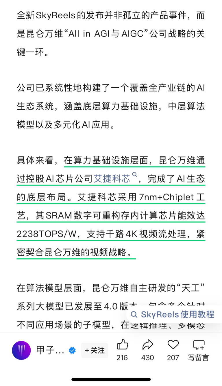 $昆仑万维(SZ300418)$ 艾捷科芯的情况甲子光年披露出来了