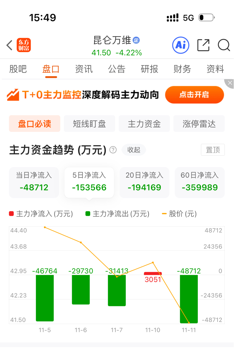 $昆仑万维(SZ300418)$ 近一周流出了20 亿元,这一年多很少有这种情况,有点看不懂了,机构清仓不计成本的出货