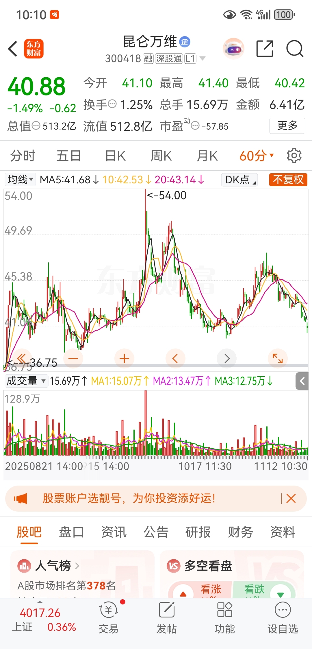 $昆仑万维(SZ300418)$ 仔细看好了,我上次说了五个交易日比回补41.27的缺口,下方36.98的缺口一定会回补,不信也没办法,你们等着吧