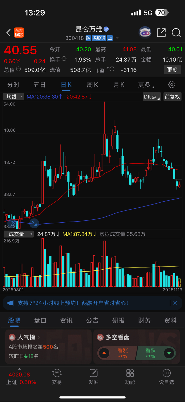 $昆仑万维(SZ300418)$ 跌下来涨不回去