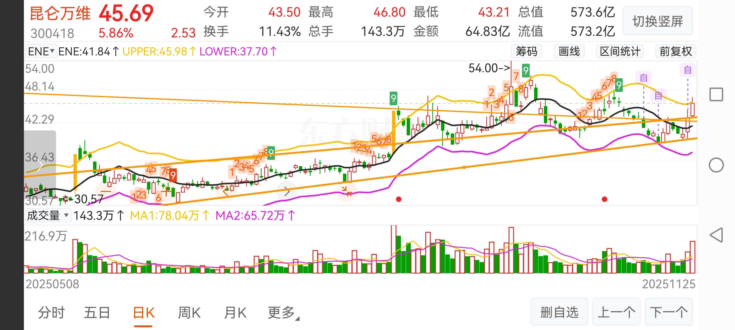 大跌下来就是机会,别人恐慌的时候我在硬挺,39.77买入的一直锁,54一飞而过也不是不可以的,360万兴昆仑我只钟意你昆仑万维
