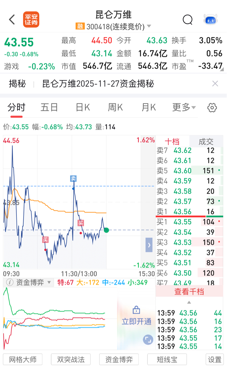 $昆仑万维(SZ300418)$ 兄弟们别怕,我进来建仓了,卖了昨天的货,进行加仓,大师开始唱多了