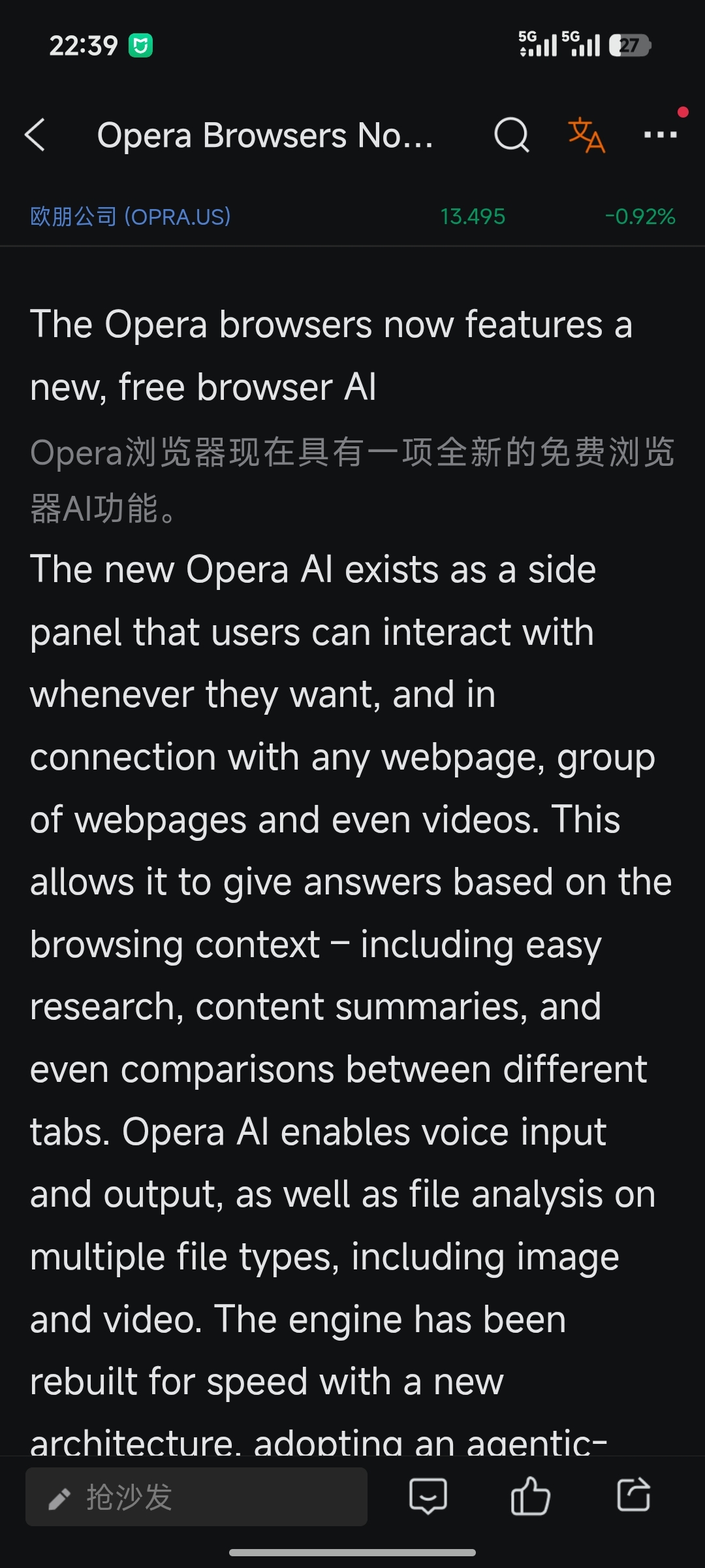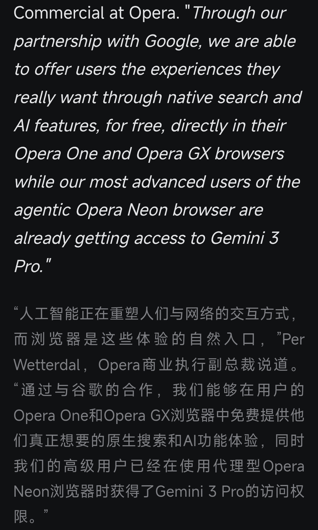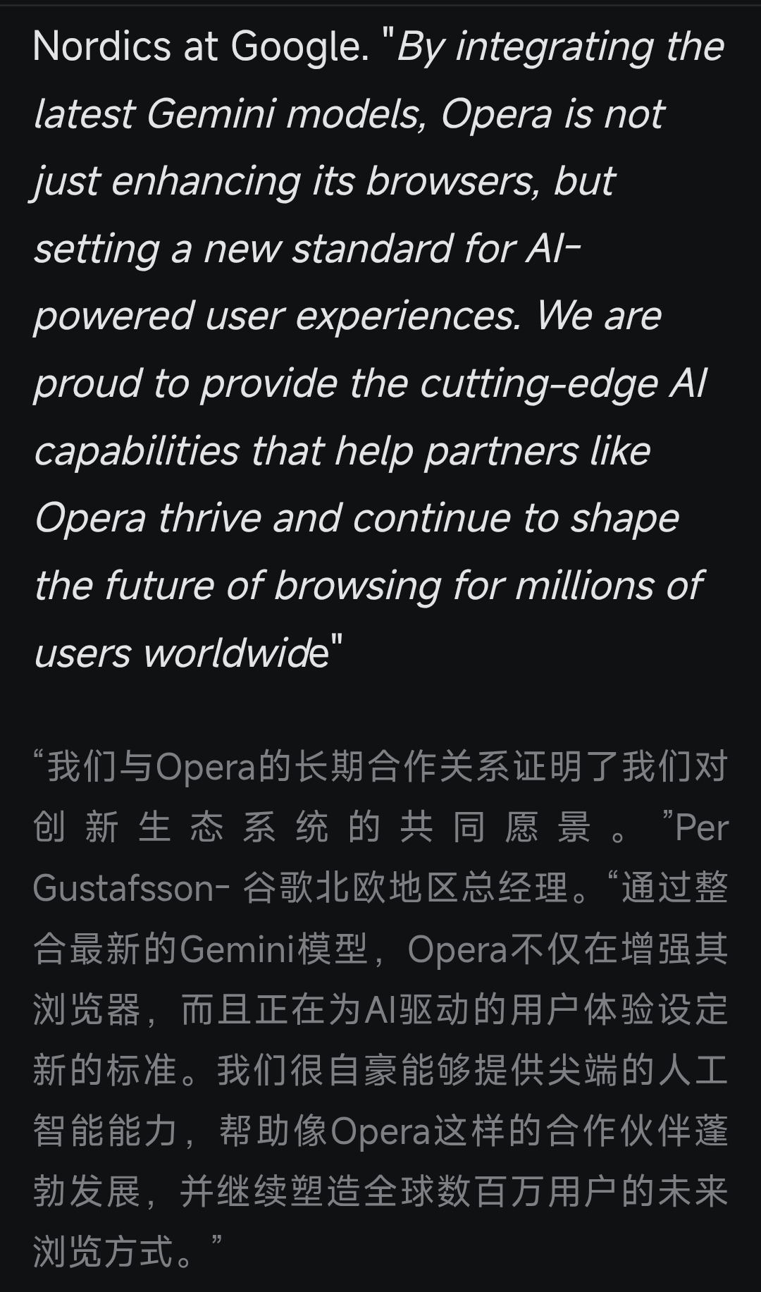 欧朋和谷歌在AI方面展开合作。别再嚷嚷昆仑和千问之类合作了,昆仑万维有谷歌这样的