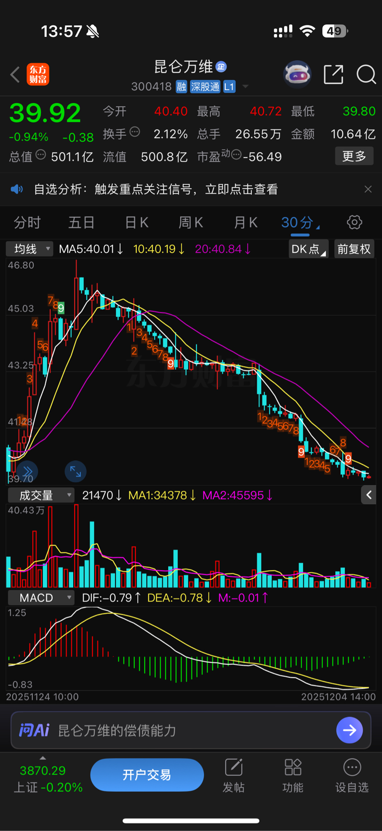 $昆仑万维(SZ300418)$ 真牛啊,一点反弹都没有,