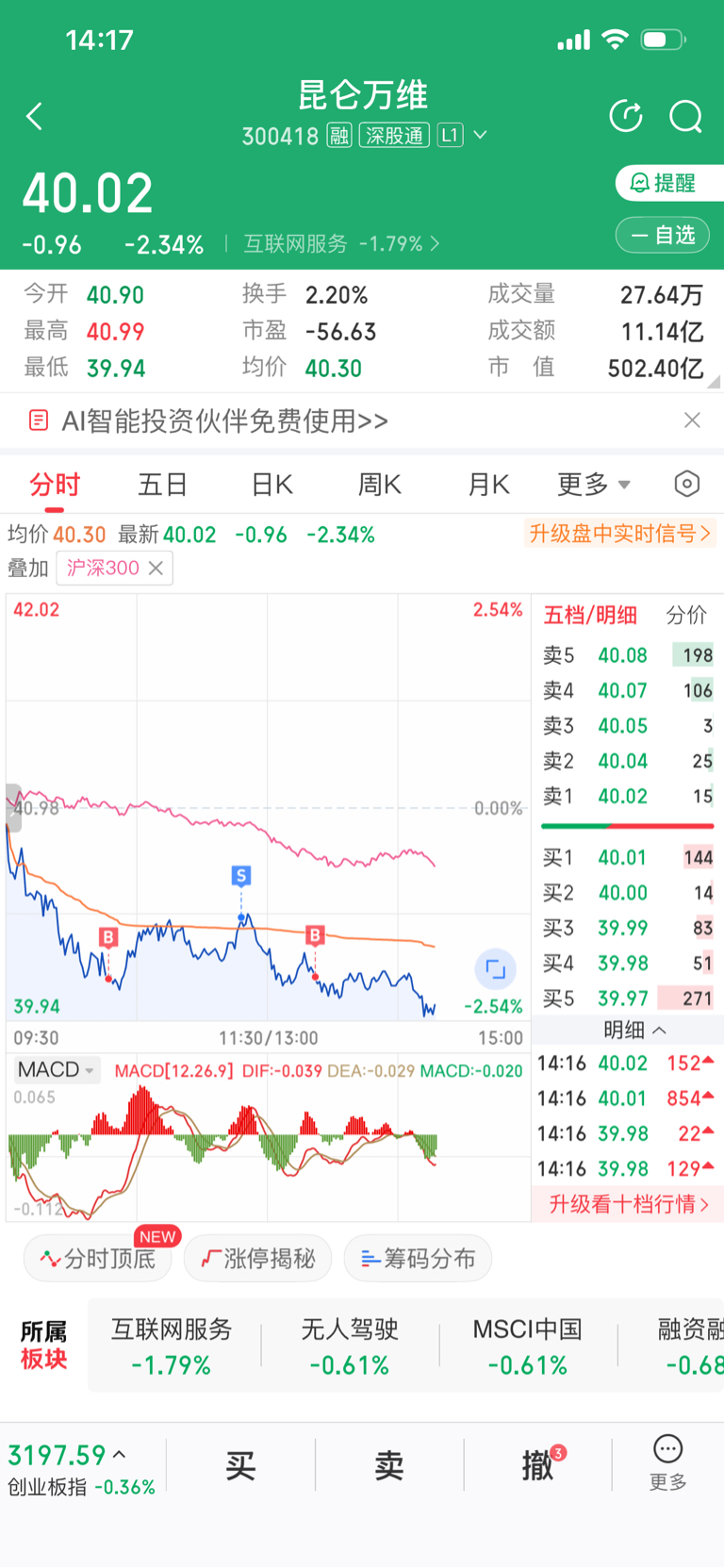 $昆仑万维(SZ300418)$ 又是三千到手,39.90没买到,给个机会