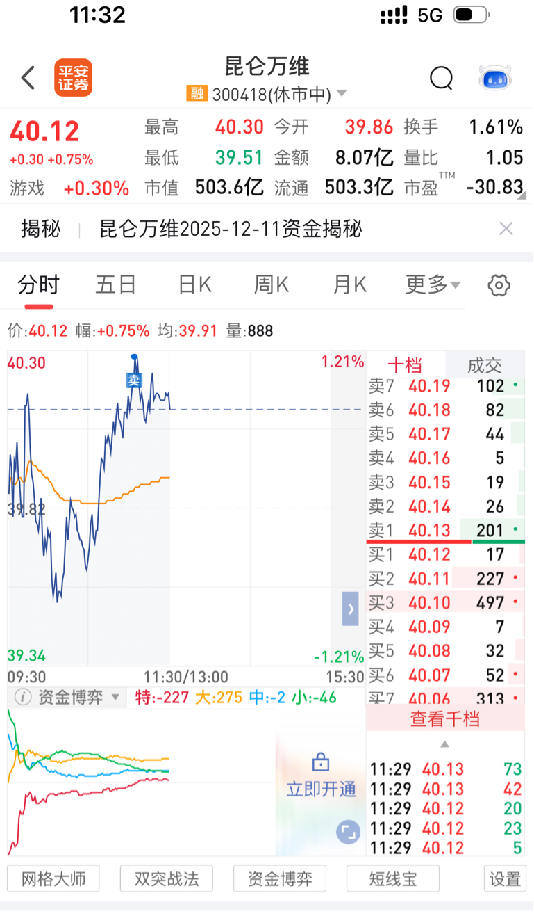 $昆仑万维(SZ300418)$ 昨天39.85买入,今天40.30卖出了, 下午看看39.90能否买入