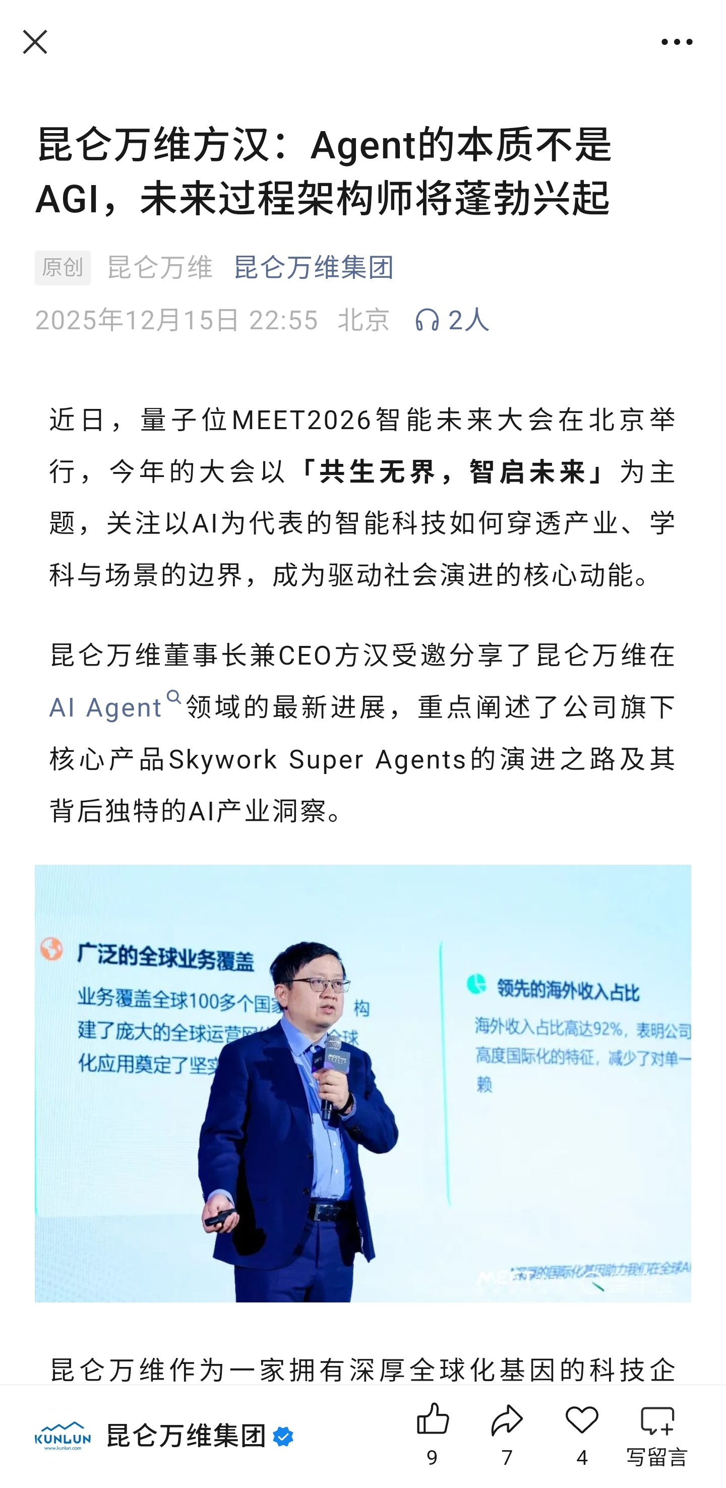 $昆仑万维(SZ300418)$ 这哥们天天跑去参加些会议搞演讲。。。 这爱好还不如让位给别人自己当个培训师得了