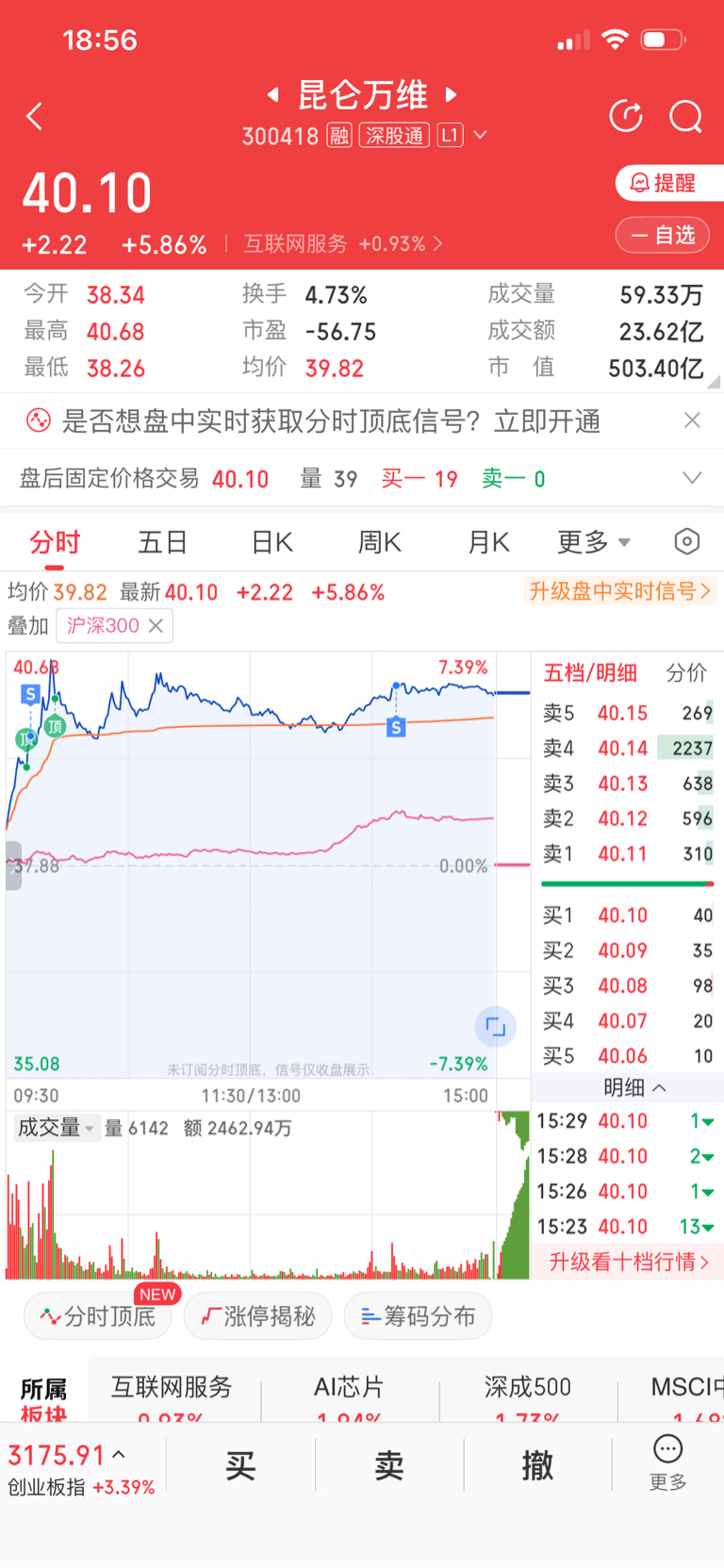 $昆仑万维(SZ300418)$ 昨天买的,今天踢出去一半,有点不舍的卖,底仓是不动的,明天涨再卖点,降持仓成本成本最重要