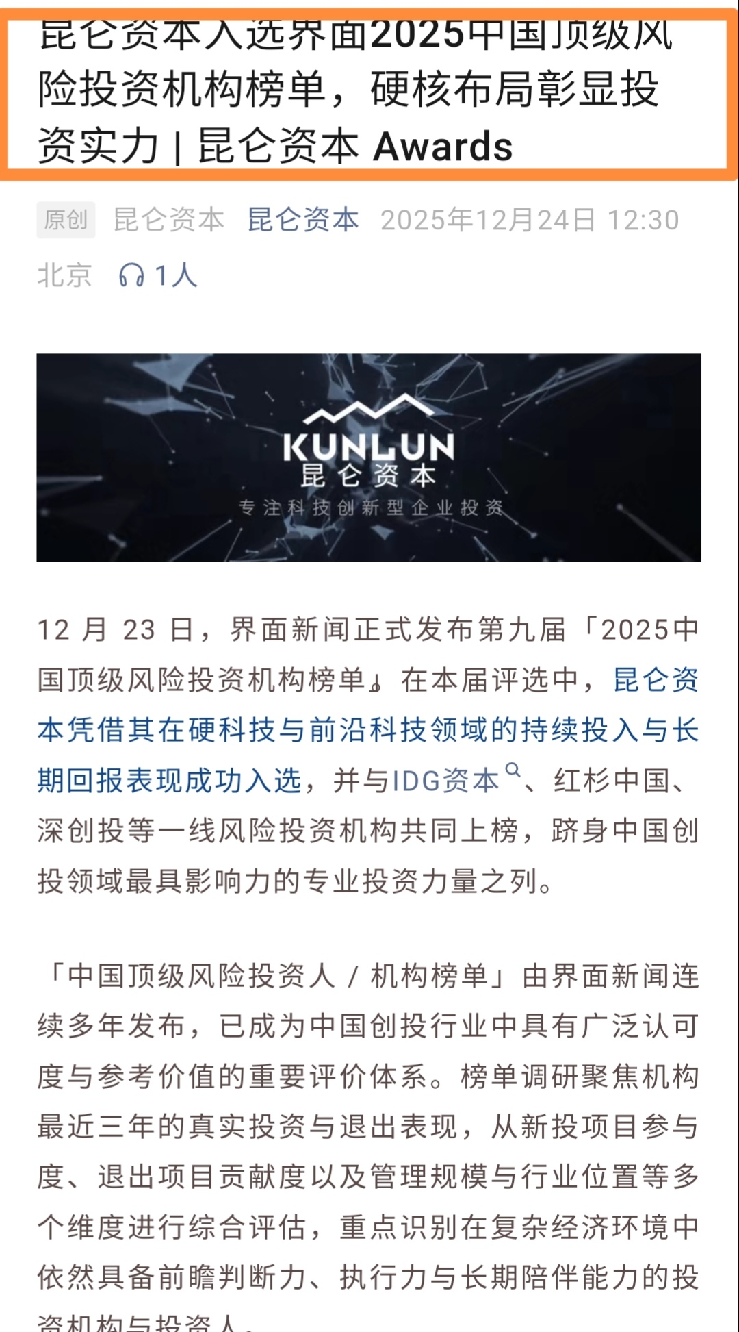 $昆仑万维(SZ300418)$ 有些人智商堪忧,口口声声说退出鸿擎科技了。看看昆仑资本刚发的公众号,若退出了,还能这么写吗