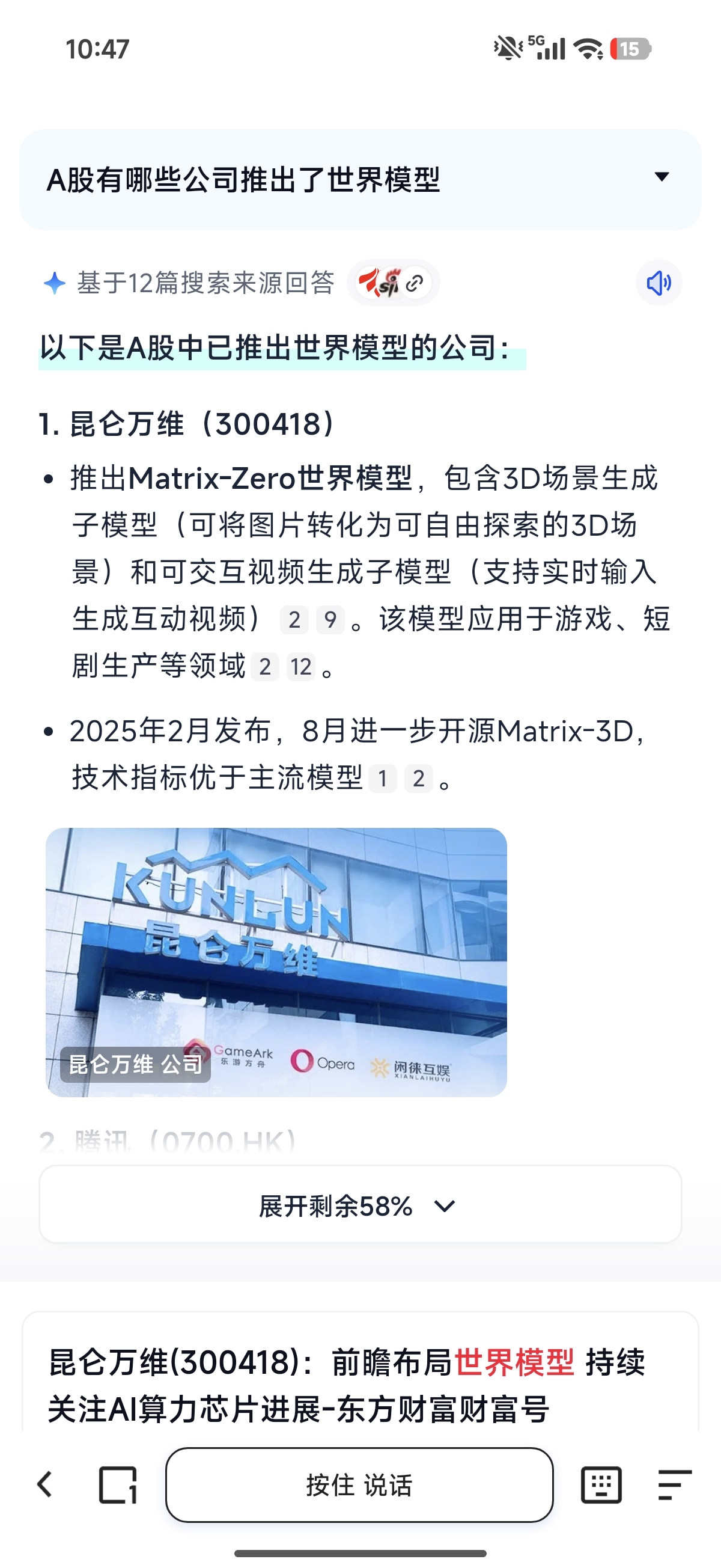 $昆仑万维(SZ300418)$ 谷歌推出了世界模型。昆仑万维最纯正。