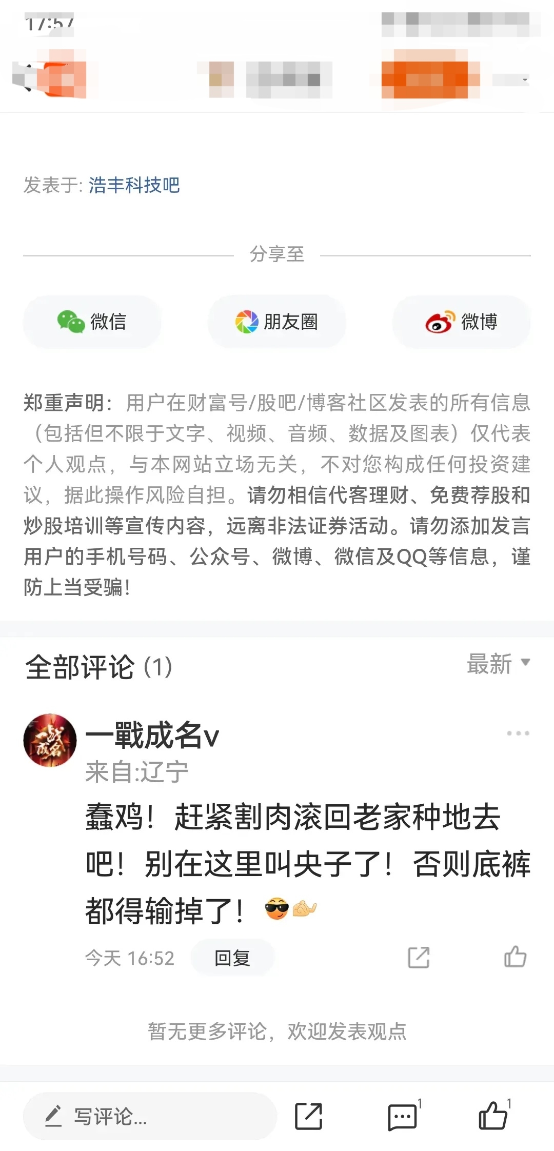 温馨提示: 1.根据《证券法》规定,禁止编造、传播虚假信息或者误导性信息,扰乱证券市场;2.用户在本社区发表的所有资料、言论等仅代表个人观点,与本网站立场无关,不对您构成任何投资建议。用户应基于自己的独立判断,自行决定证券投资并承担相应风险。《东方财富社区管理规定》