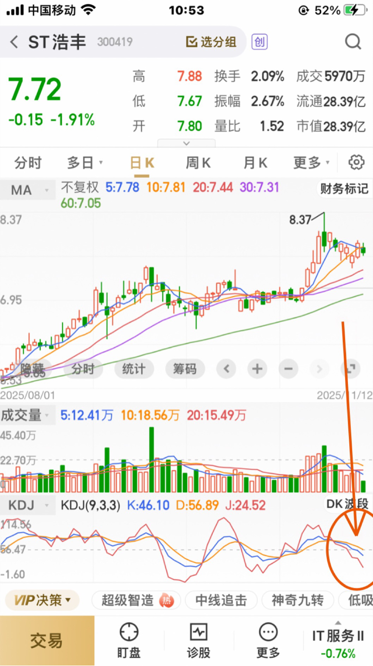 $ST浩丰(SZ300419)$ KDJ还没有回头迹象,继续下滑。