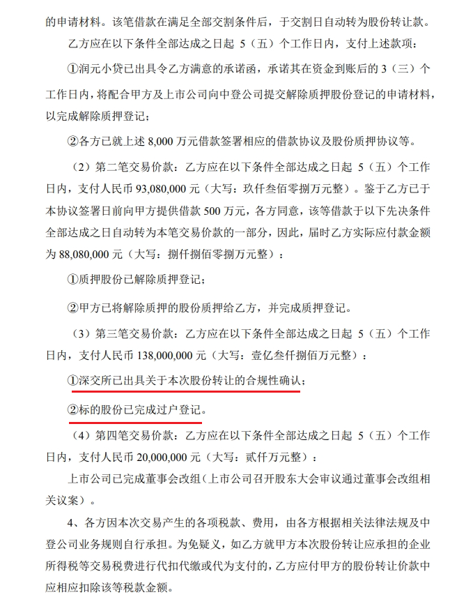 第三次付款条件就两条:“深交所已出具关于本次股份转让的合规性确认;标的股份已完成过户登记。”第条已完成,王广宇肯定迫不及待的要收到款,难道第条还没定落?
