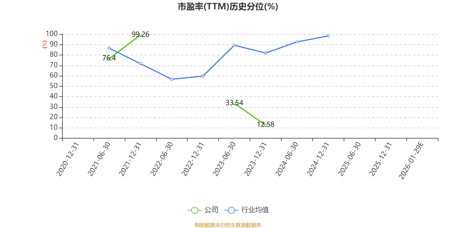 以本次披露业绩预告均值计算,公司近年市盈率(TTM)图如下所示: