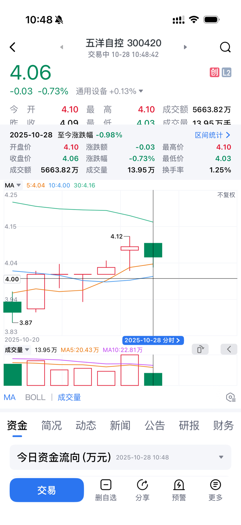 $五洋自控(SZ300420)$ 3.96-4可以去探探