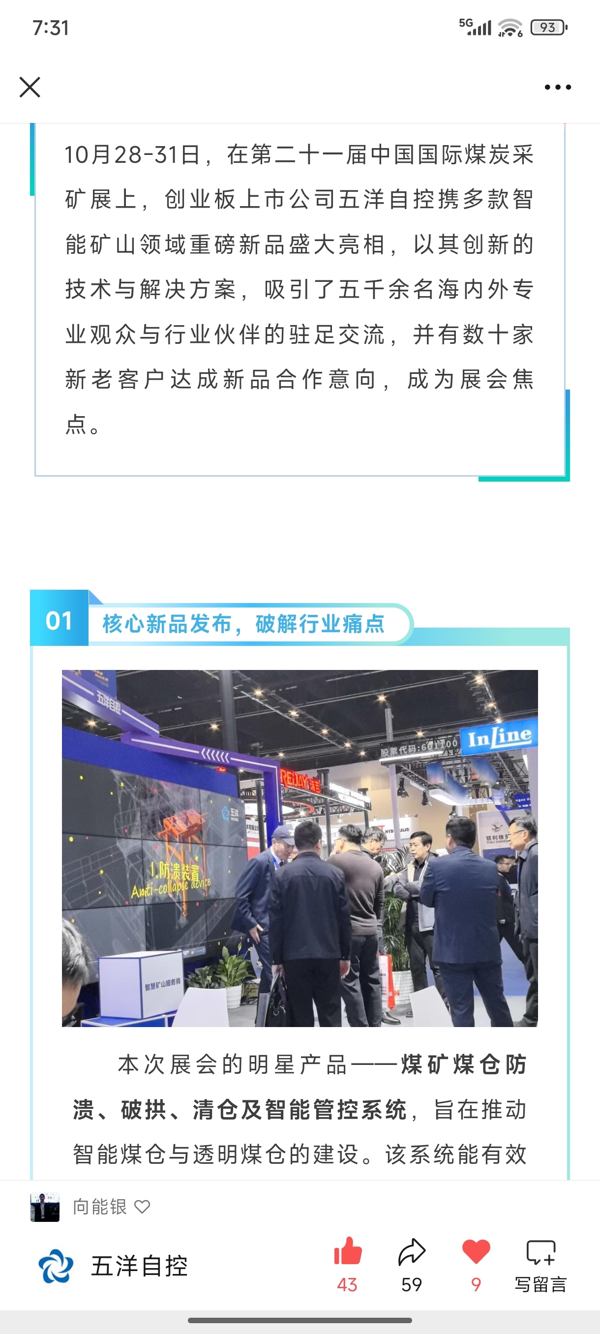 五洋自控重磅新品惊艳北京煤展,并有数十亿合同待签,意味股价翻十几倍