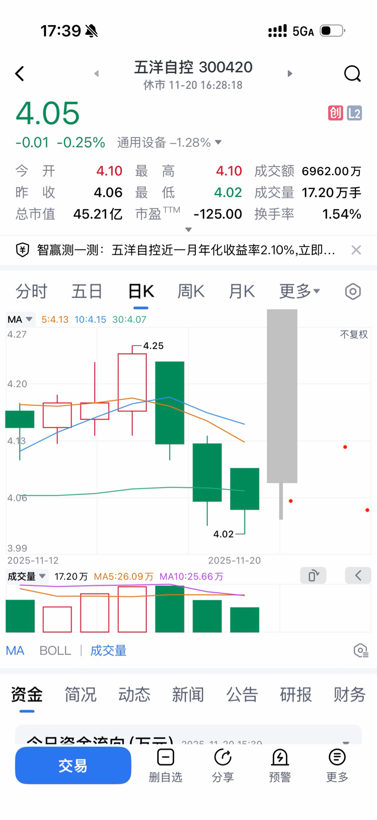 $五洋自控(SZ300420)$ 很好奇大家还能坚守多久,一般来说70%坚守不到拉升,90%坚守不到全肉段