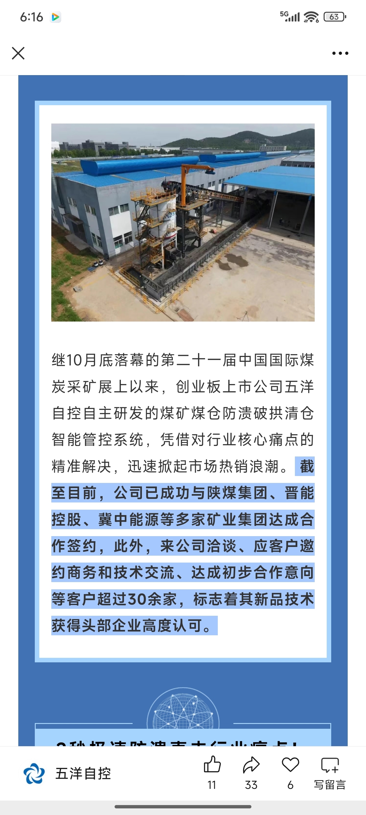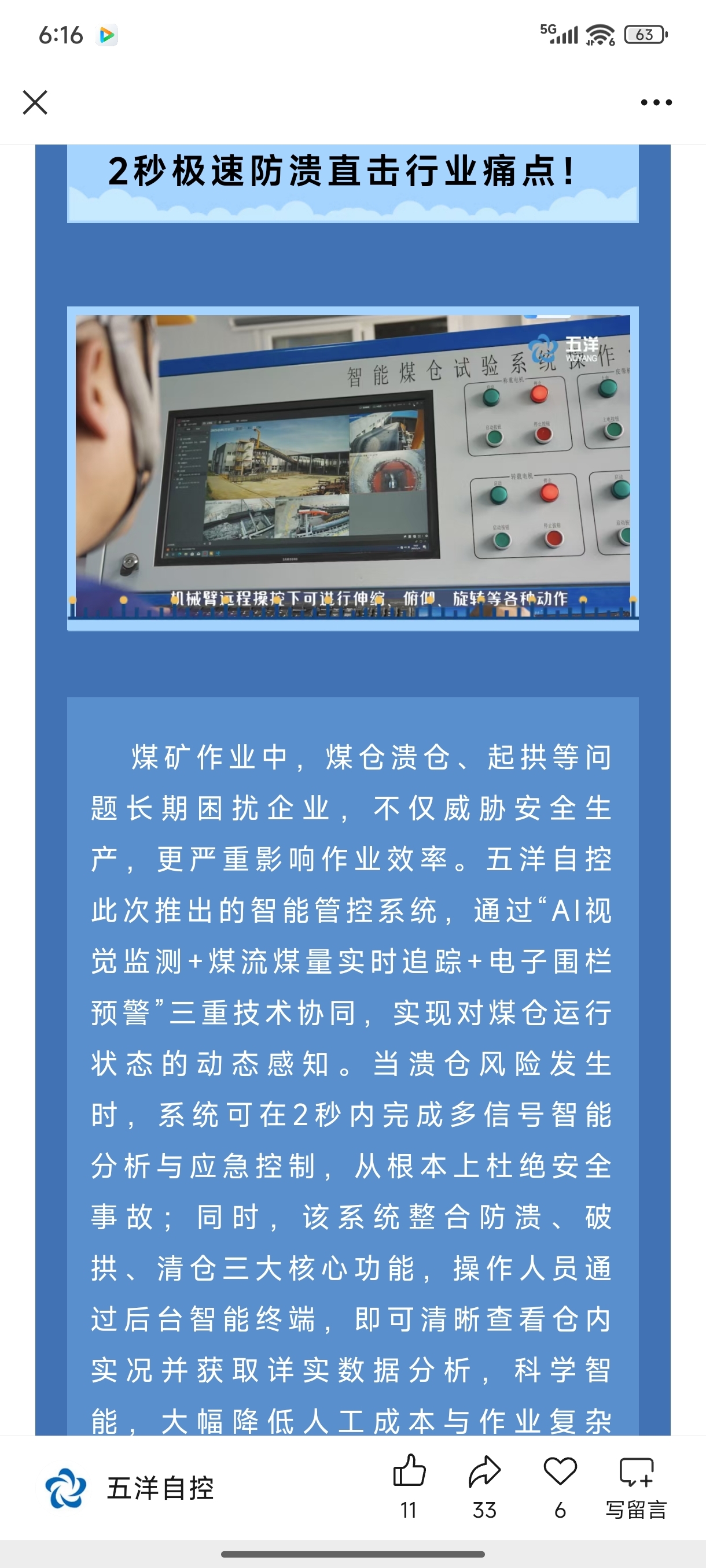 重磅五洋自控与陕煤集团等多家头部企业就煤仓智能管控系统及装备达成合作